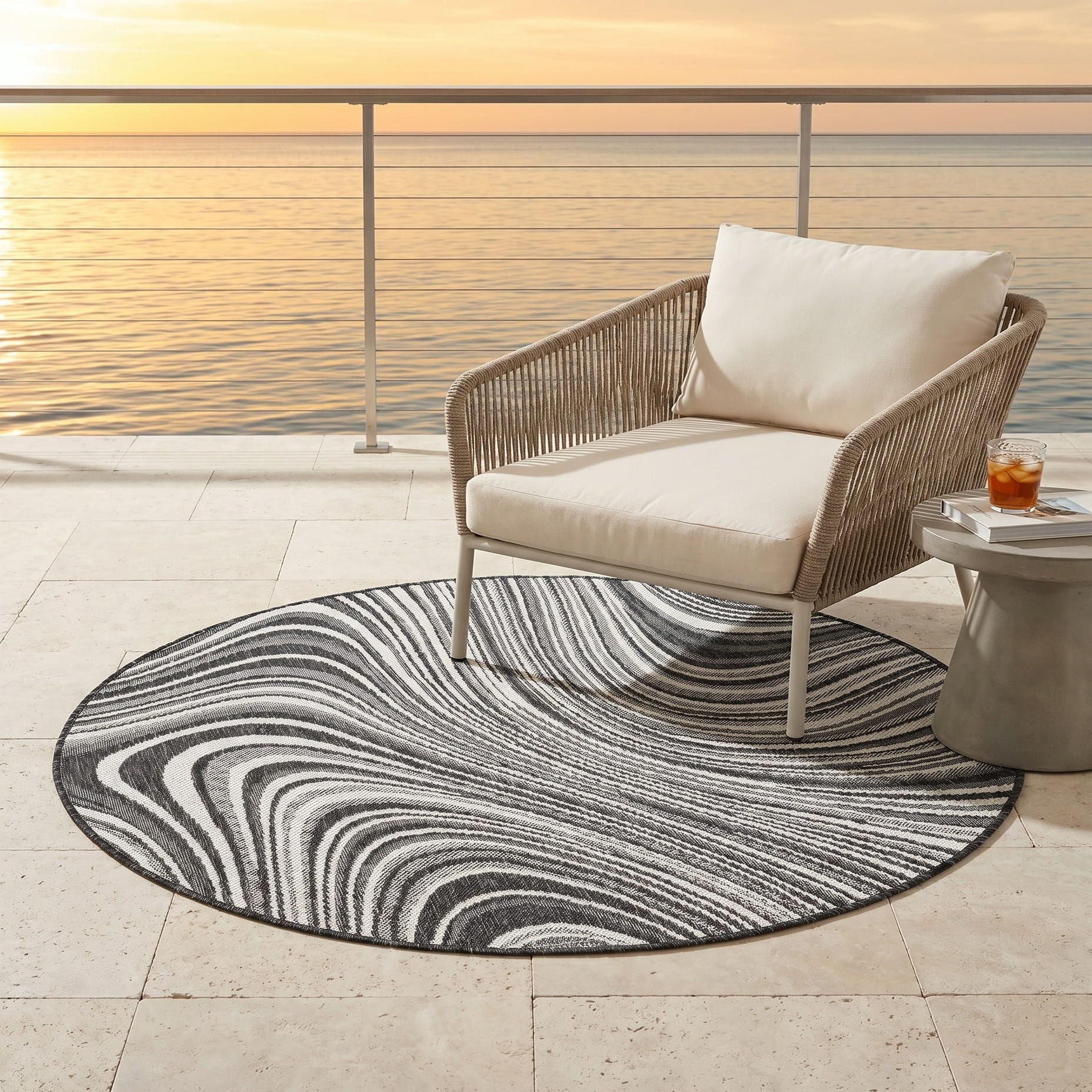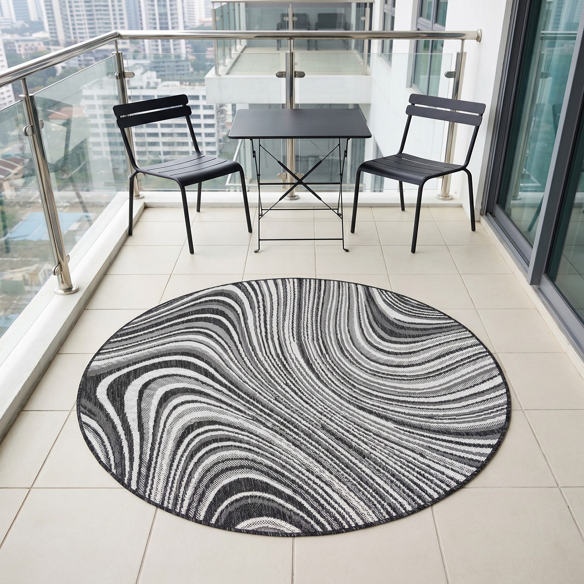4' x 4' Easy-Clean Modern Indoor / Outdoor Round Rug