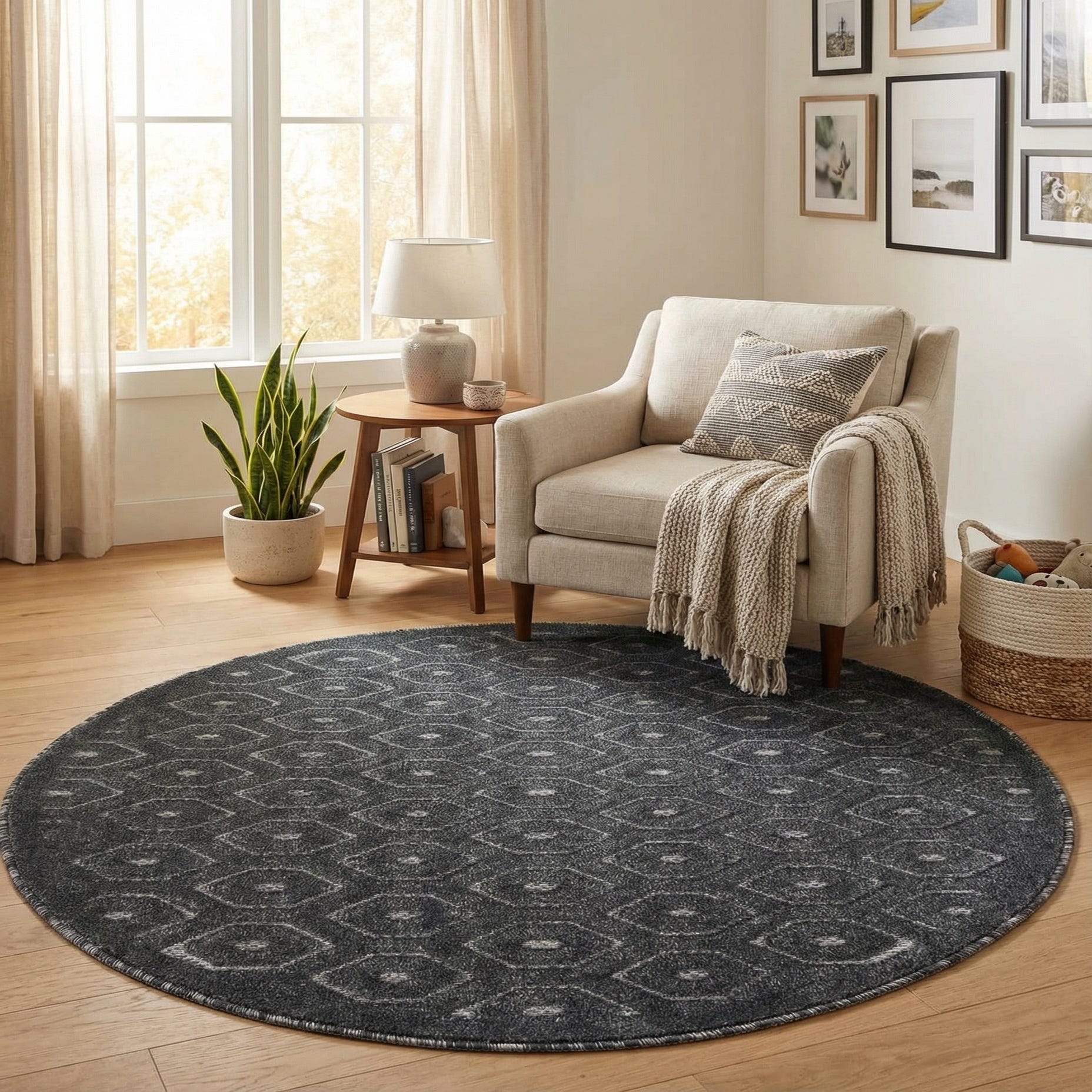 4' x 4' Washable Trellis Textured Indoor / Outdoor Round Rug