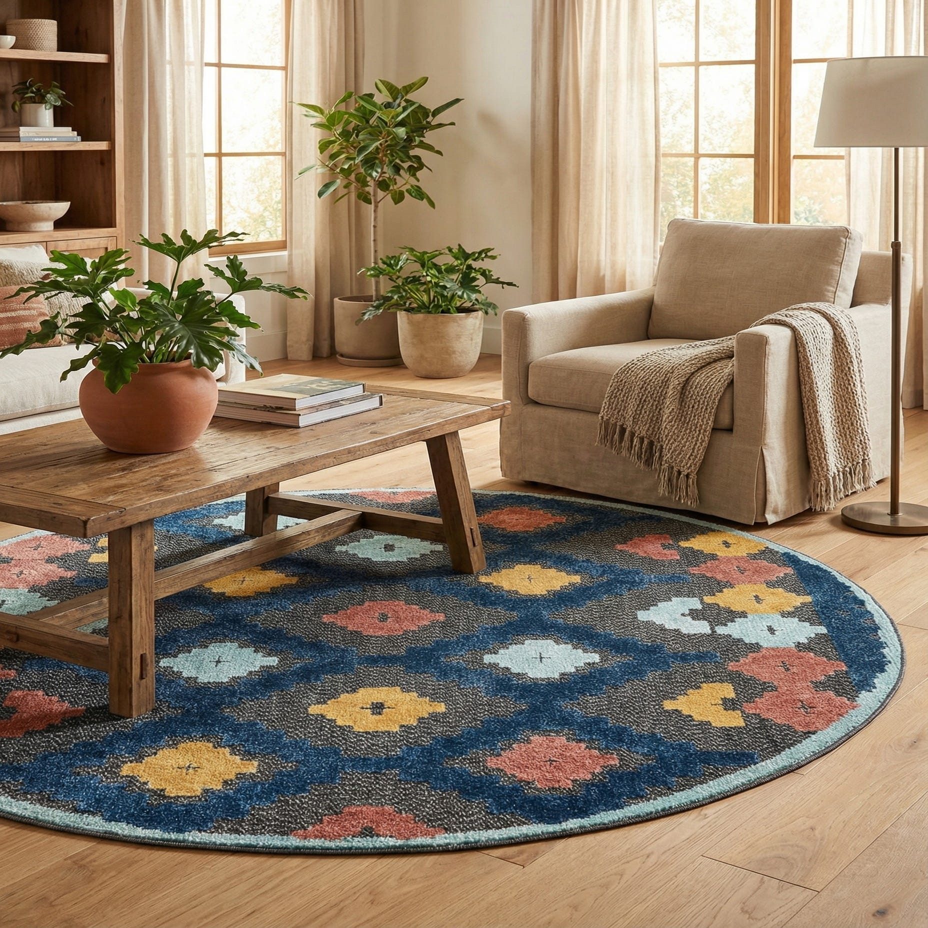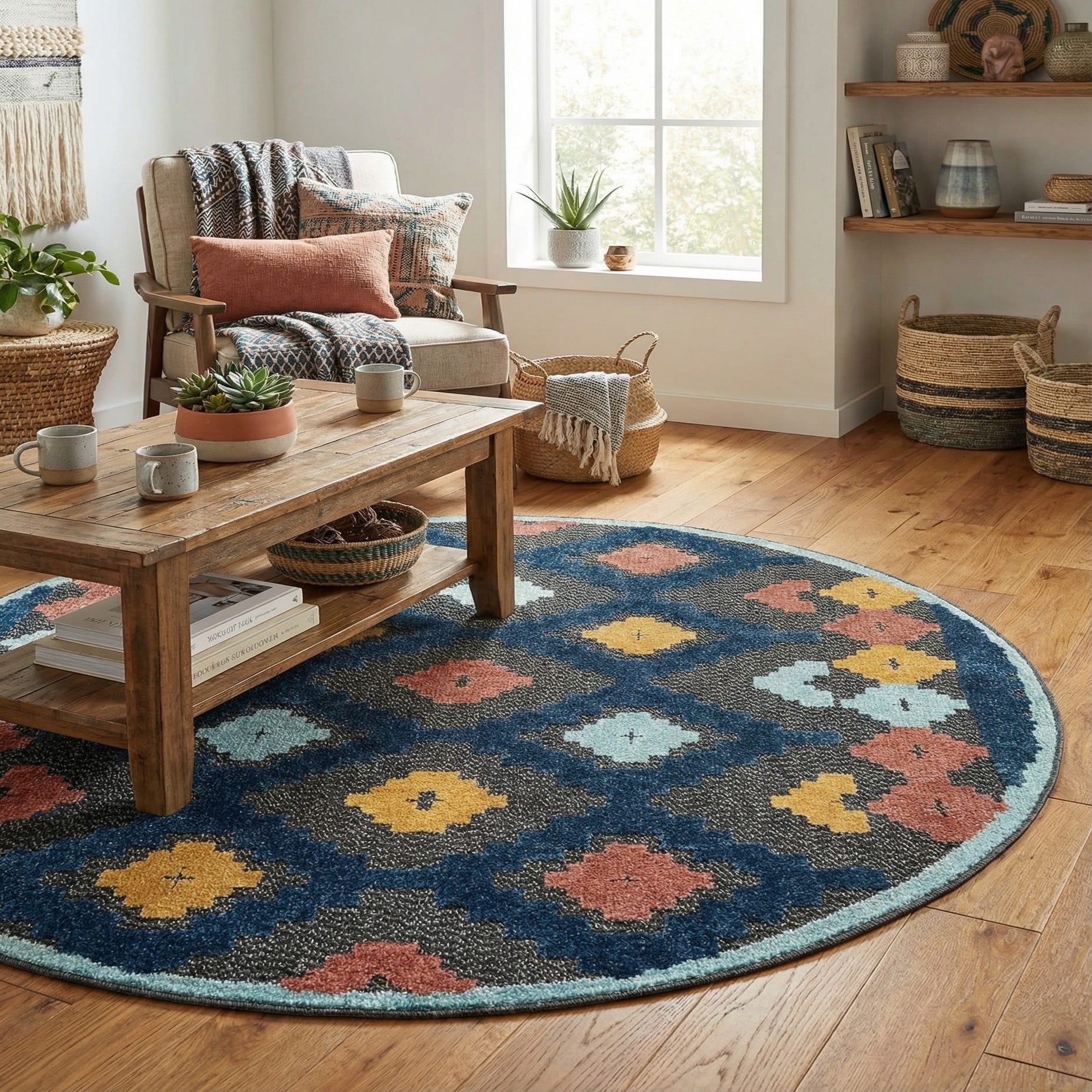 Due to its construction, the rug is stain-resistant, pet-friendly, and shed-free, which makes it an excellent option for high-traffic areas and homes with pets. Its texture offers a pleasant underfoot experience and contributes to the rug's overall appeal and longevity.