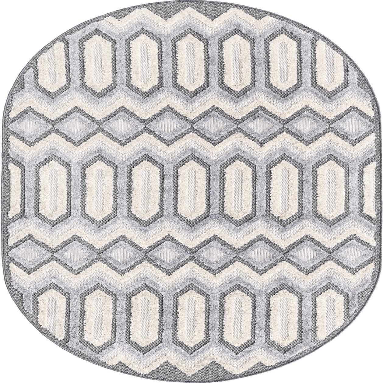 The oval silhouette softens angular furniture and works well in compact seating areas, entryways, or beside a bed. Pair it with light wood or matte black furnishings and cool-toned textiles for a modern or transitional scheme, or layer it over a larger natural-fiber rug to introduce pattern without overwhelming the room. The neutral charcoal, gray and ivory palette makes it easy to coordinate with both minimalist and mid-century inspired interiors.