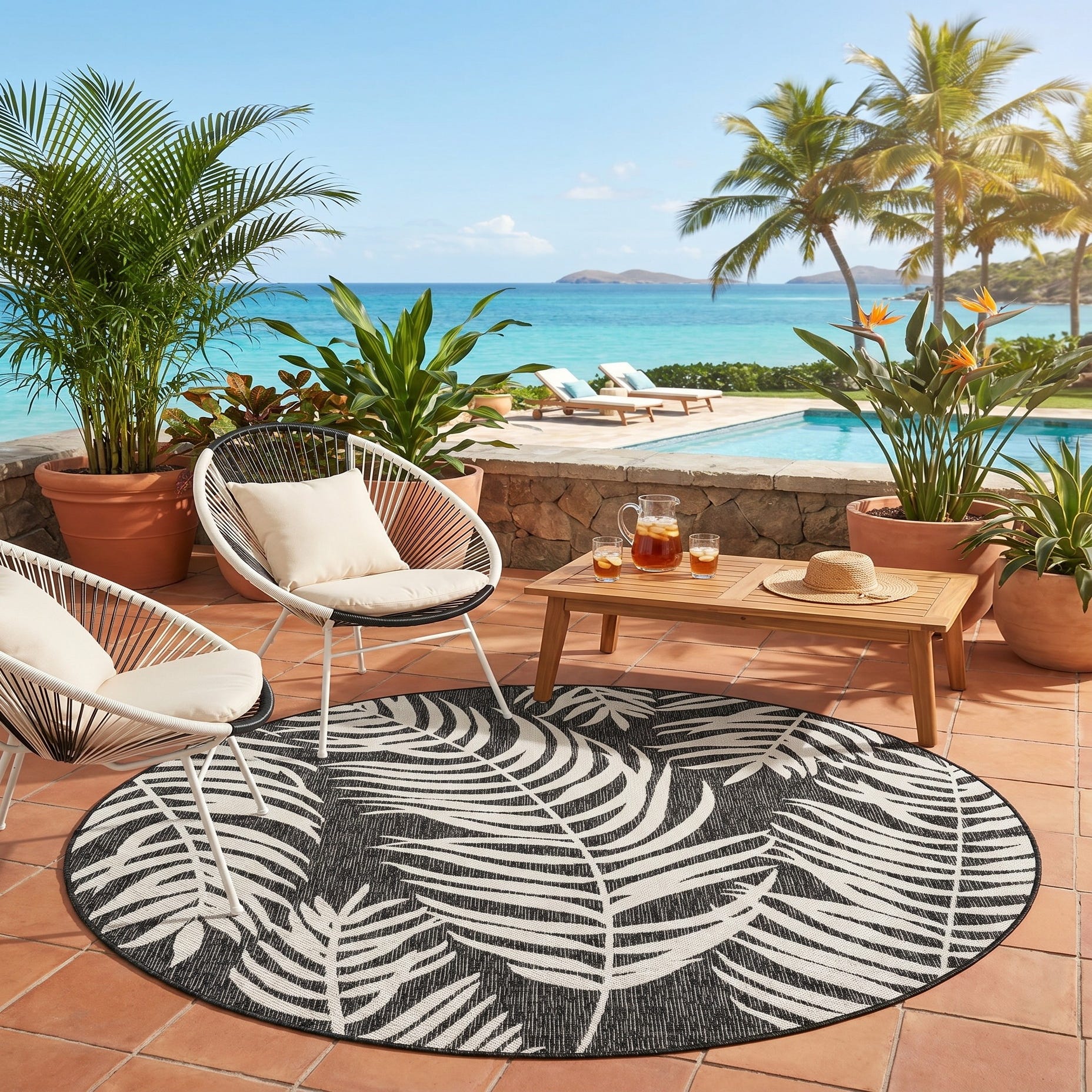 6' x 6' Easy-Clean Botanical Indoor / Outdoor Round Rug