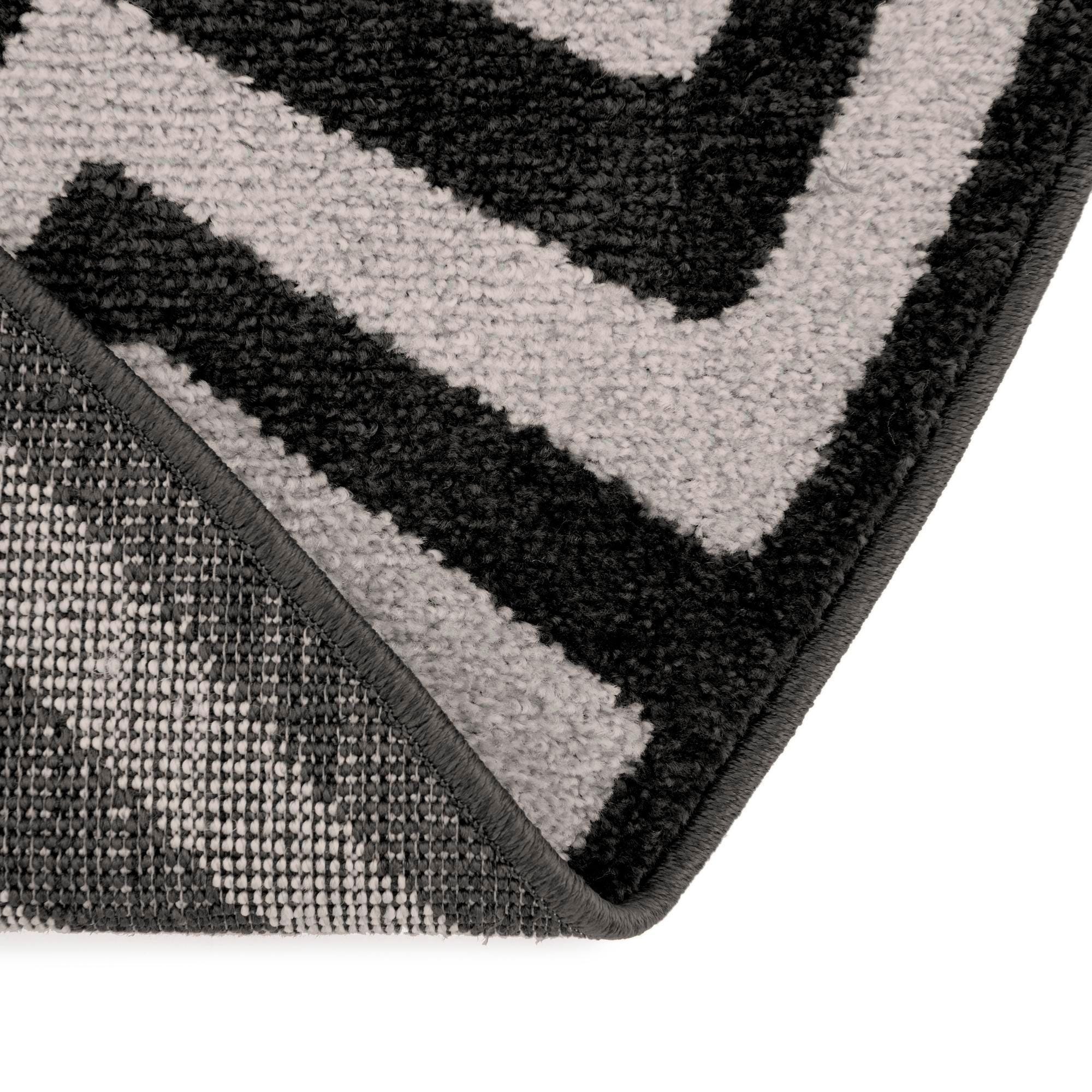 Primary color is Charcoal. Colors in this rug include: Charcoal, Black, Beige.