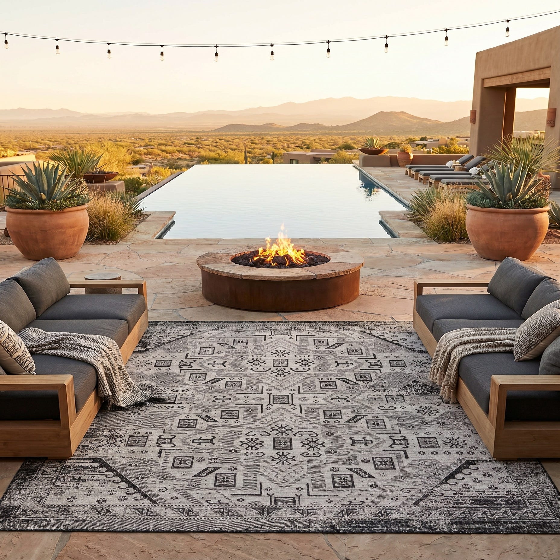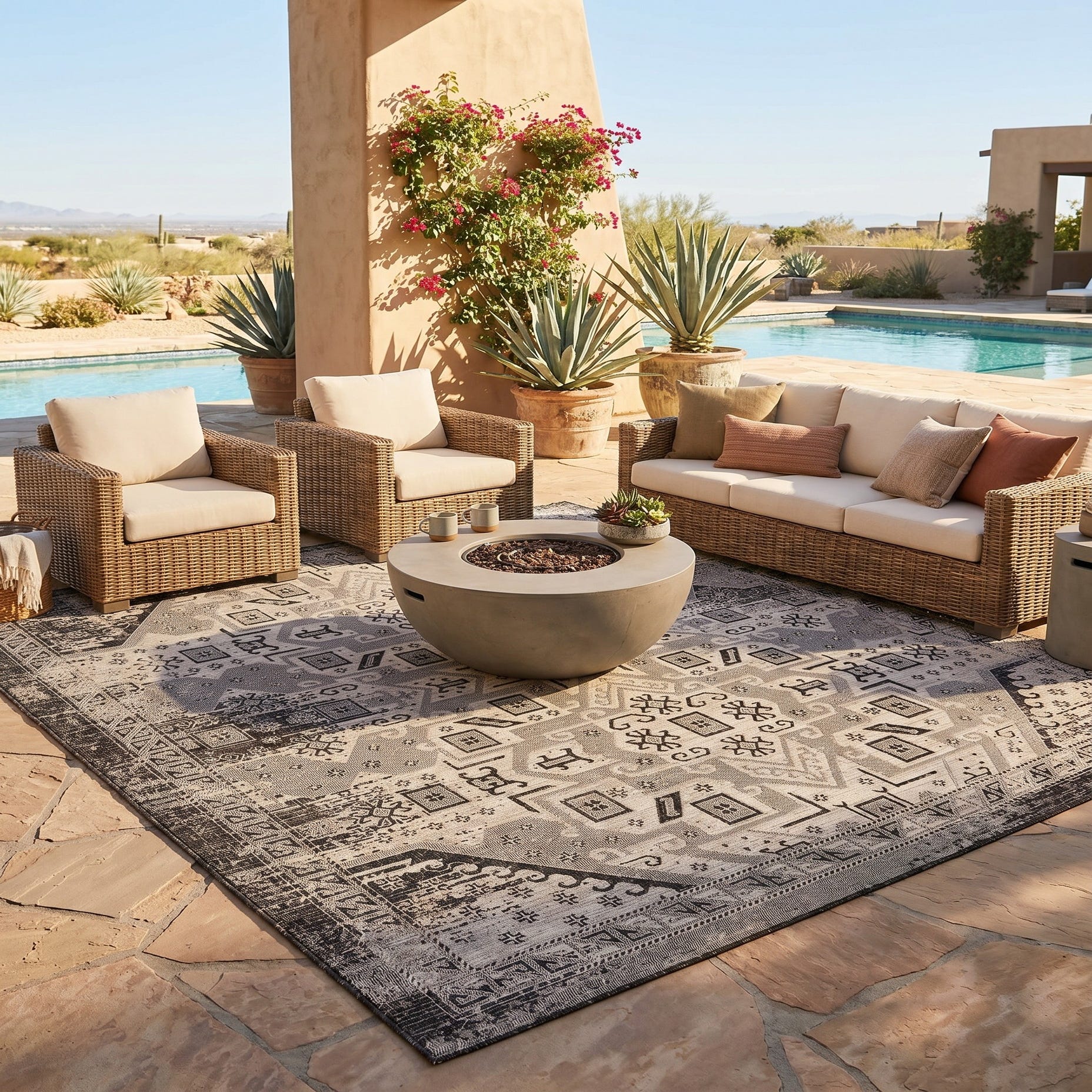 10' x 10' Easy-Clean Aztec Indoor / Outdoor Square Rug