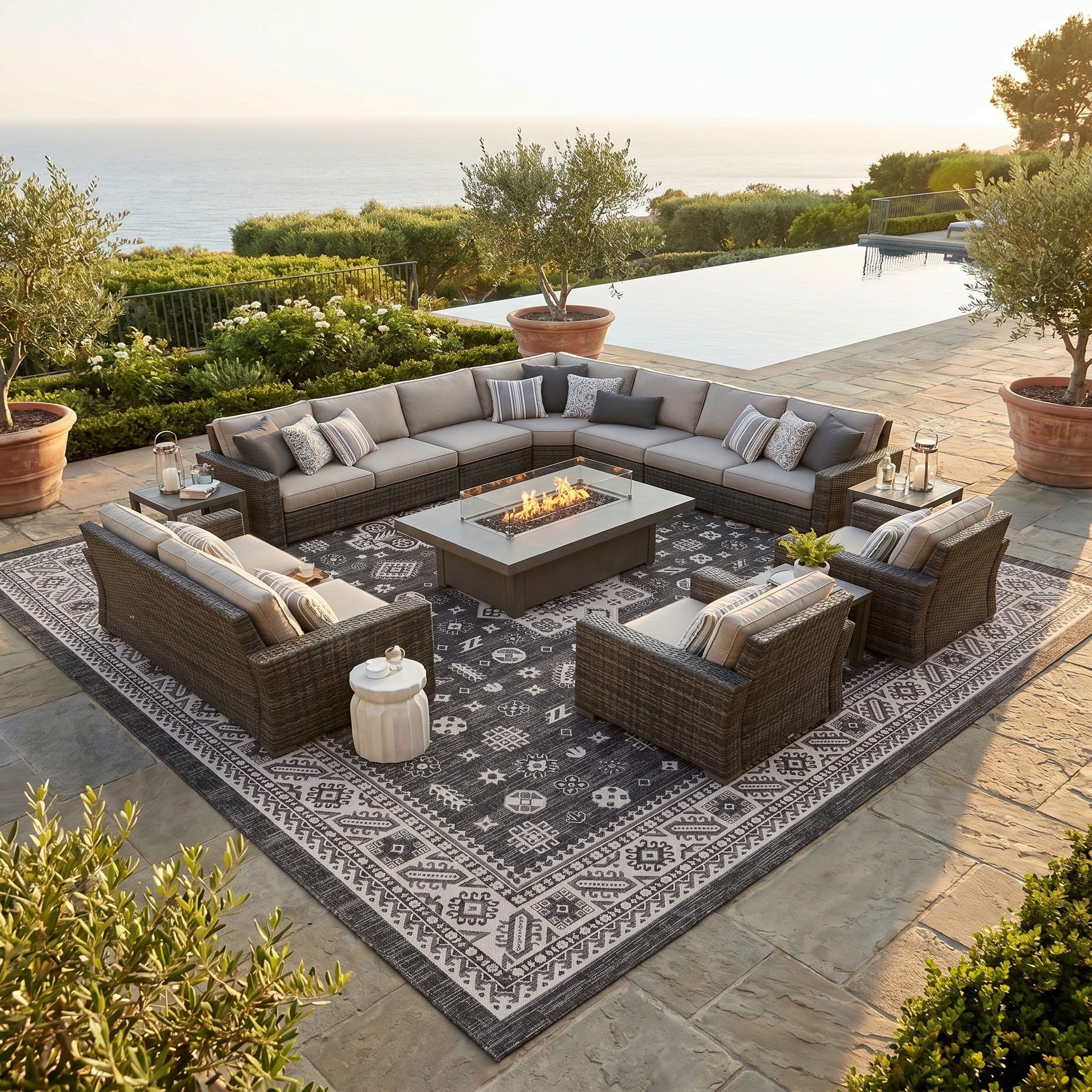 13' x 13' Easy-Clean Aztec Indoor / Outdoor Square Rug
