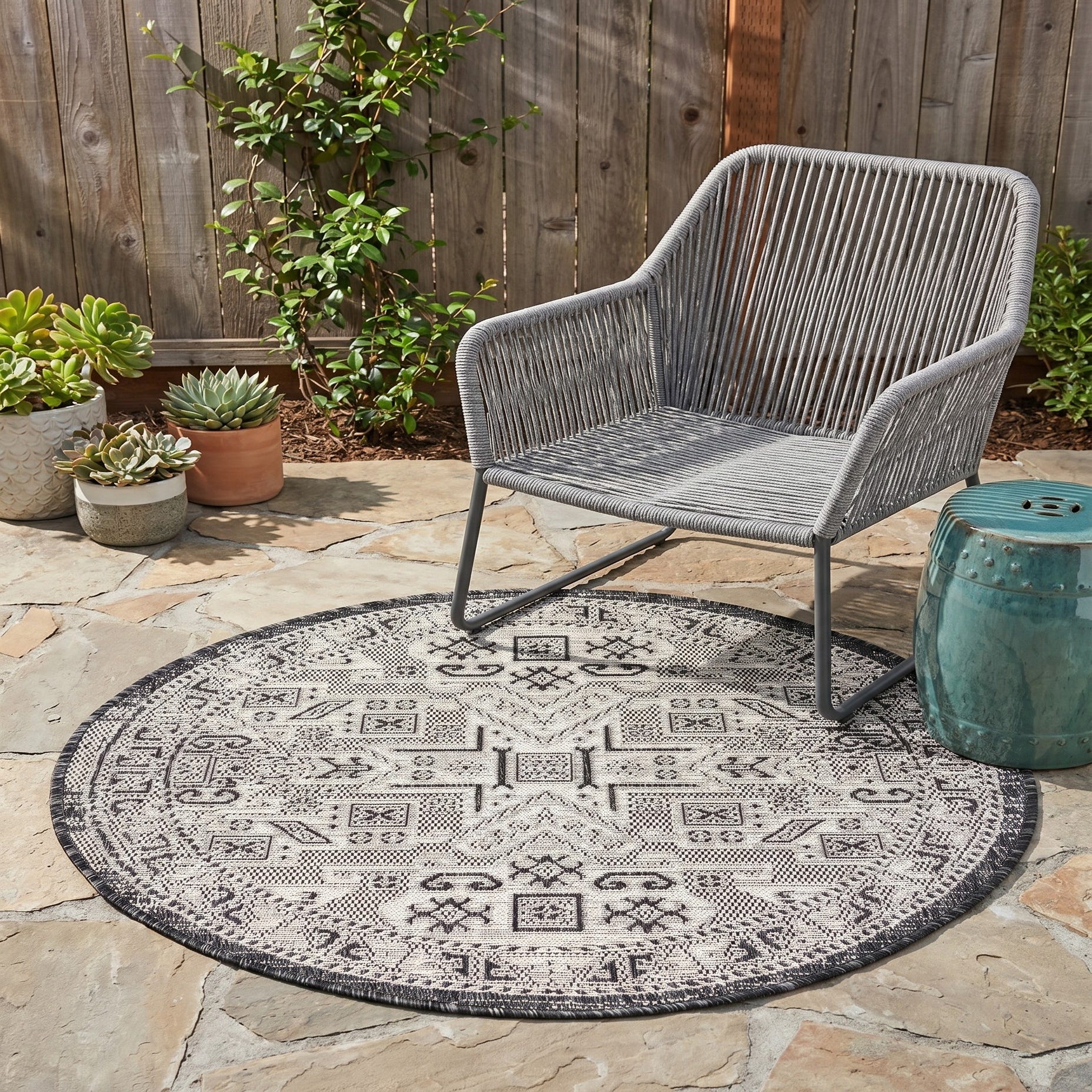 3' x 3' Easy-Clean Aztec Indoor / Outdoor Round Rug