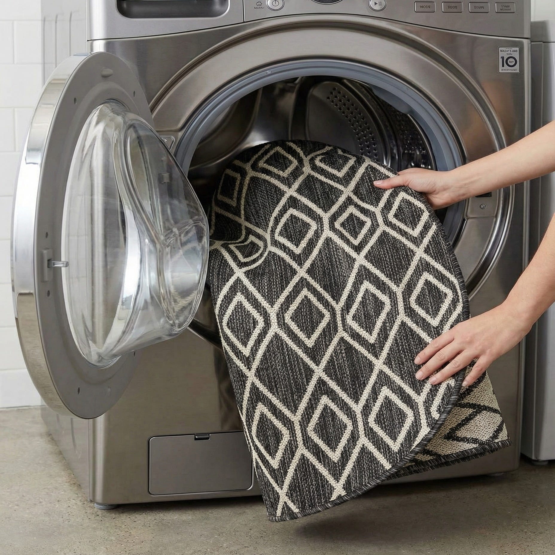 Ideal for covered patios, balconies, or casual indoor spots like a breakfast nook or sunroom, this round rug anchors small seating areas and bistro sets with confident simplicity. Pair it with light natural woods and black metal accents for a modern look, or layer with neutral cushions and potted greenery for a relaxed, contemporary outdoor living area. Its durable, low-profile construction also makes it well suited to entryways and compact entertaining zones.