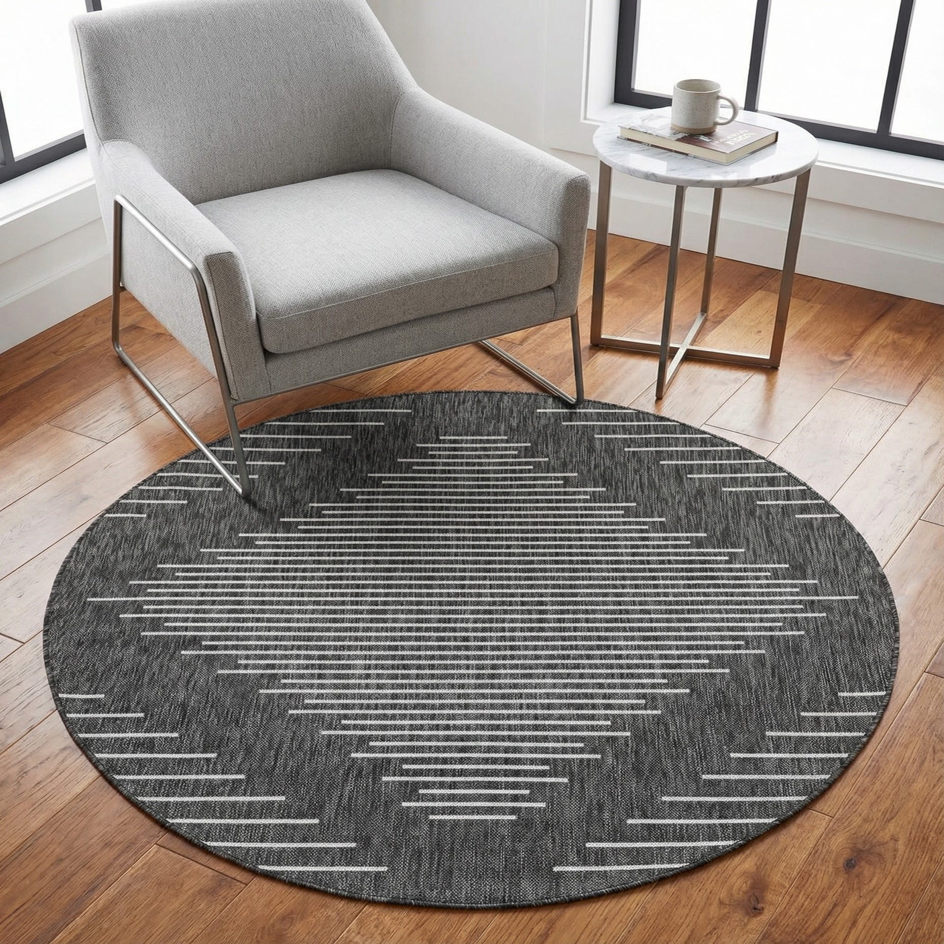 4' x 4' Washable Modern Indoor / Outdoor Round Rug