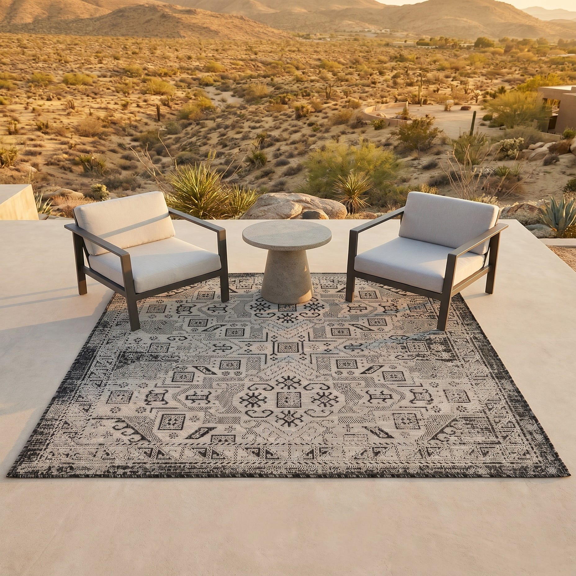 5' 3 x 5' 3 Easy-Clean Aztec Indoor / Outdoor Square Rug