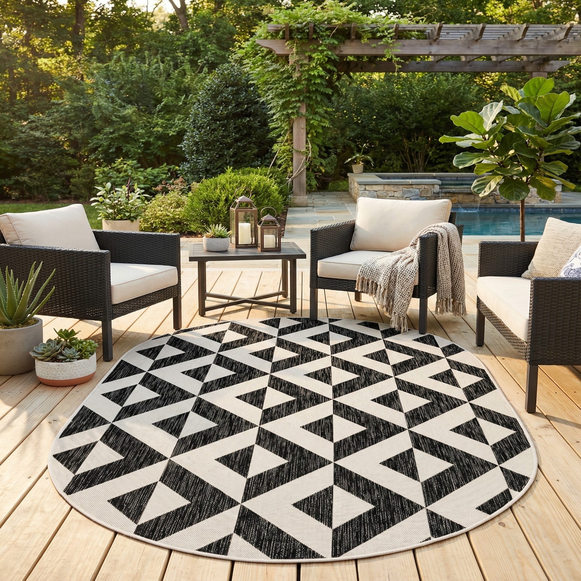 5' 3 x 8' Easy-Clean Jill Zarin Napa Indoor / Outdoor Oval Rug