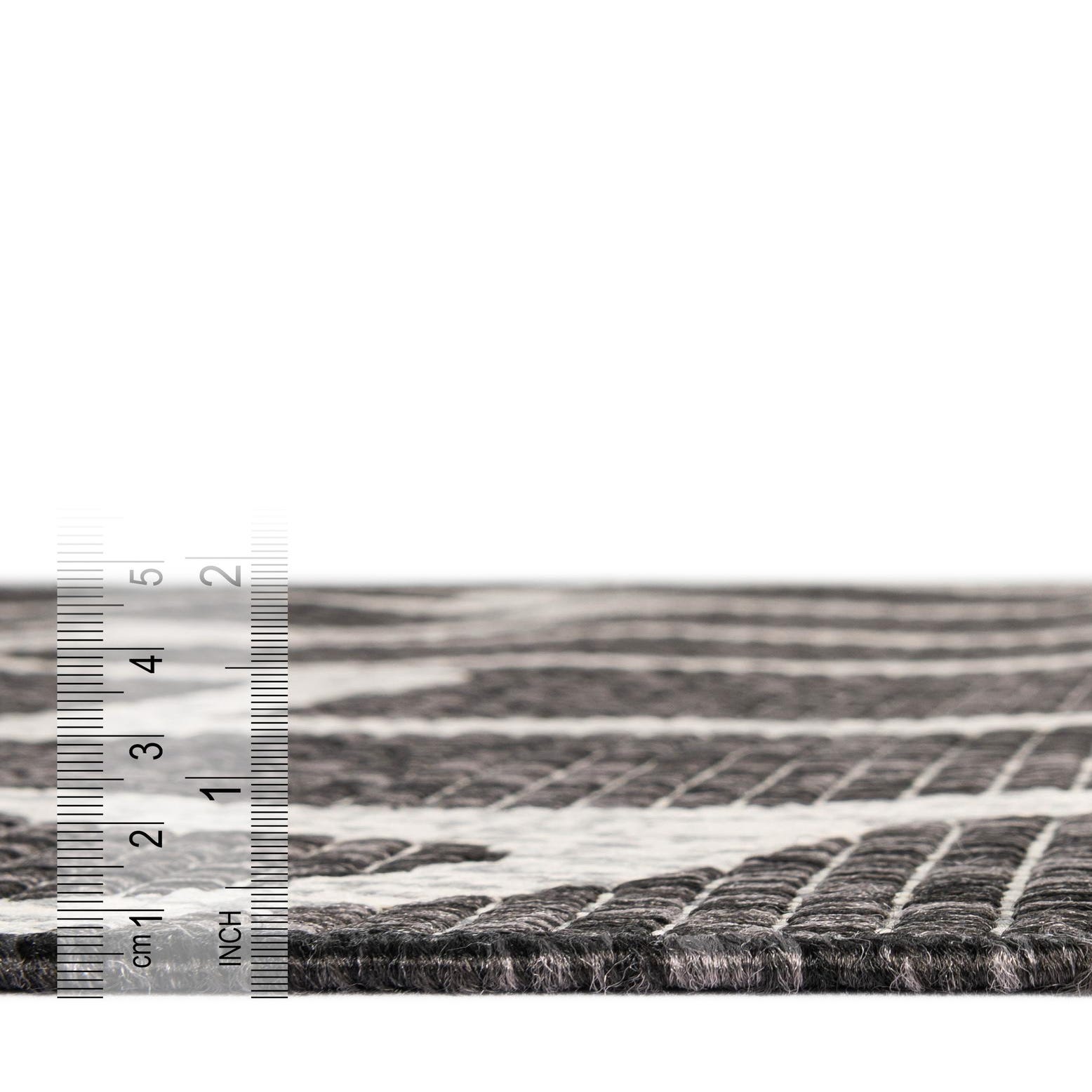 This runner is well-suited to contemporary and transitional spaces, lending an edgy yet sophisticated touch to hallways, outdoor patios, or living areas seeking a statement piece that can withstand the rigors of everyday use. The neutral colors allow for a seamless integration into a variety of decor schemes, complementing both understated and bold interior themes.