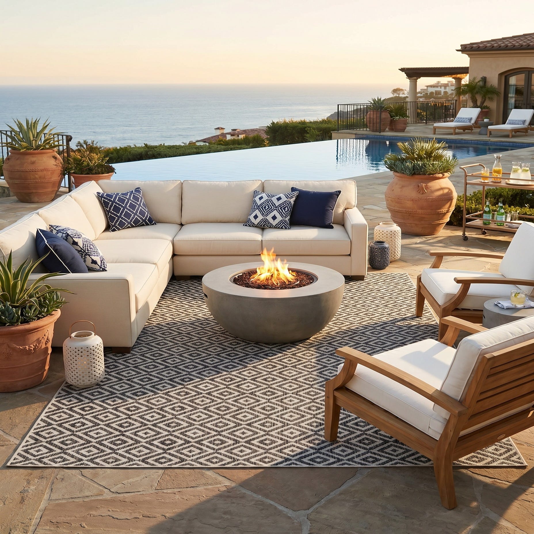 • Navy blue outdoor performance fabric sofa