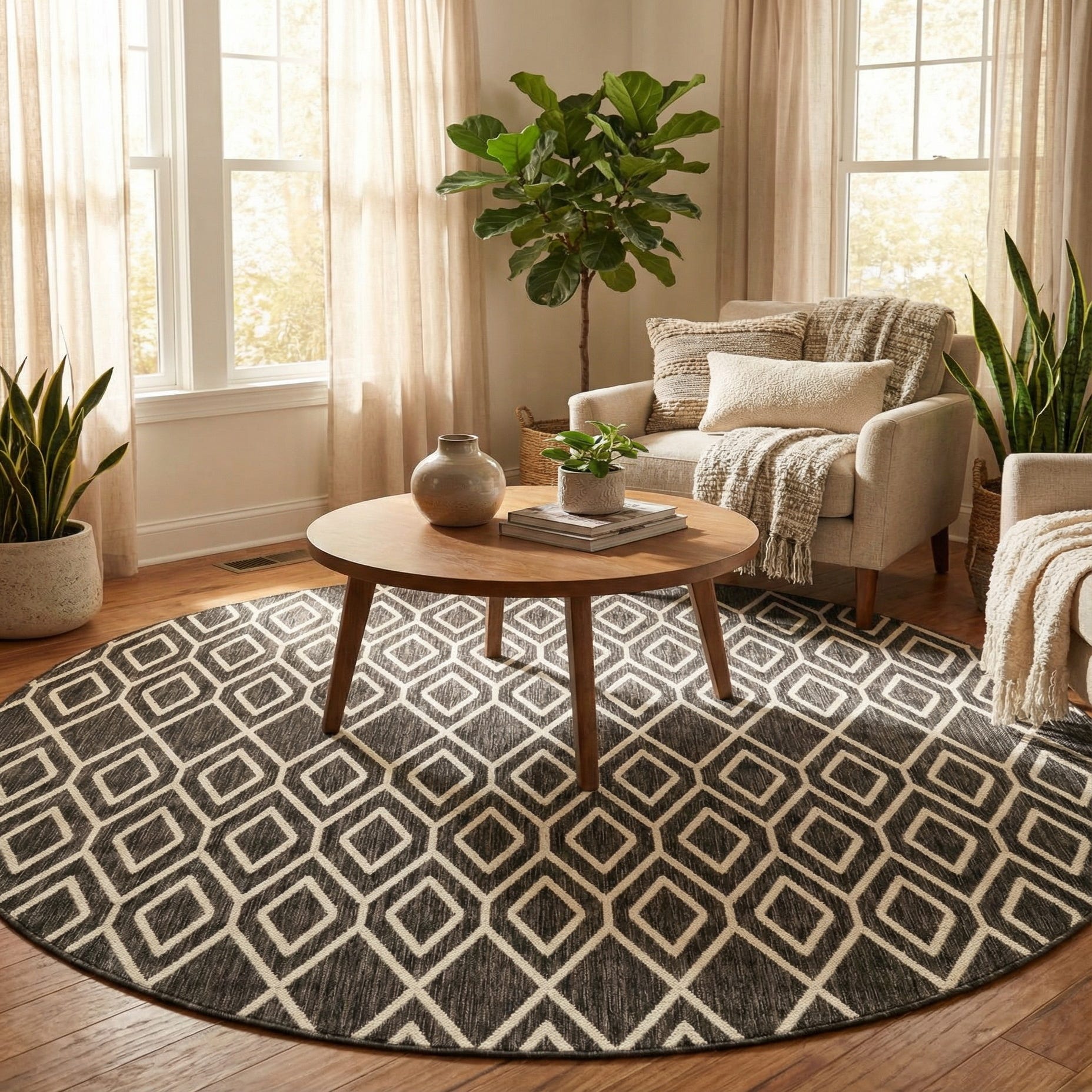 7' x 7' Washable Jill Zarin Indoor / Outdoor Round Rug