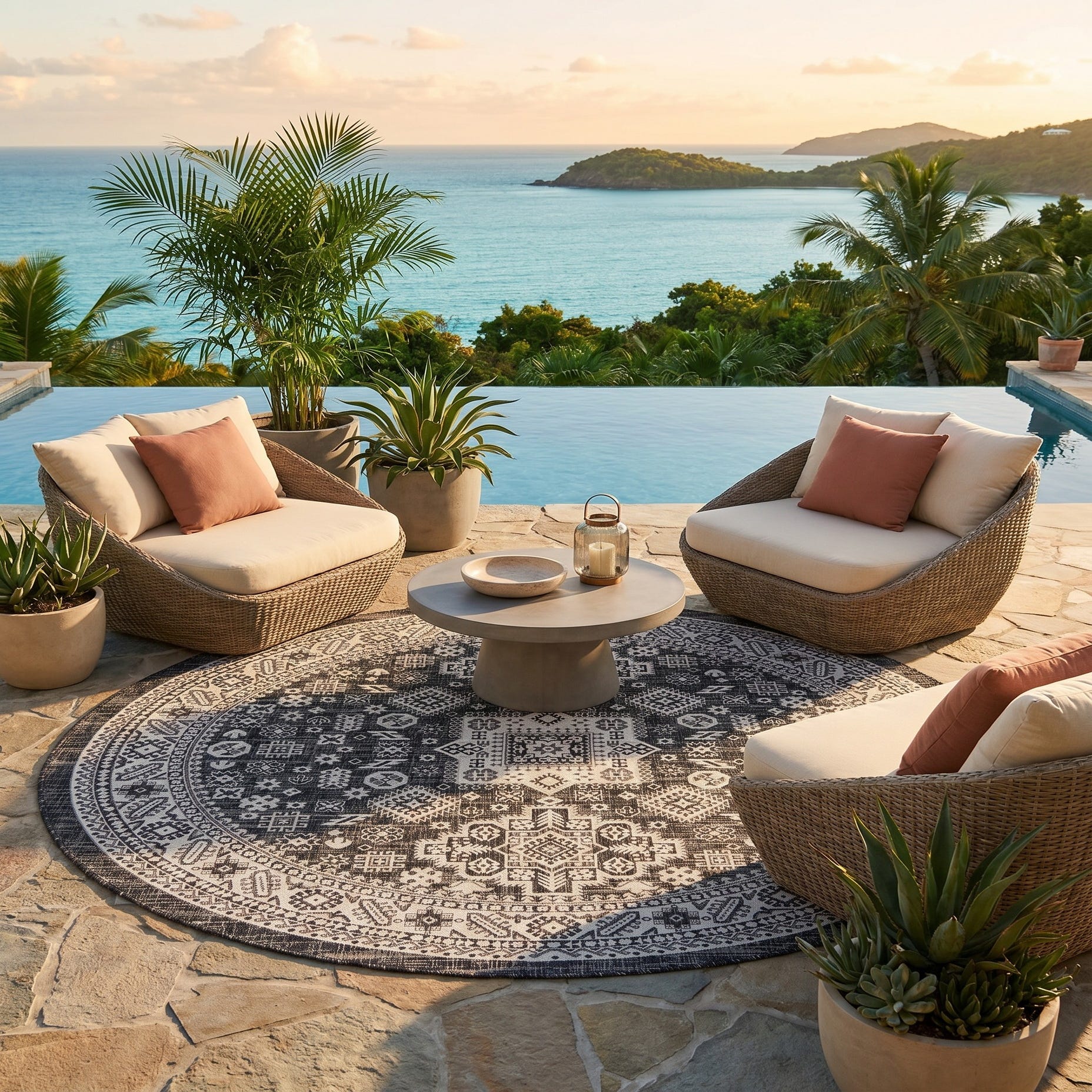 7' 10 x 7' 10 Easy-Clean Aztec Indoor / Outdoor Round Rug
