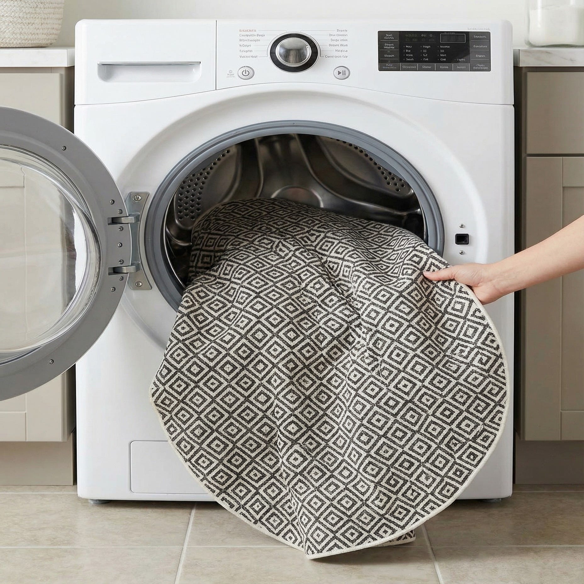Place this rug beneath a round dining table or a compact seating group on a covered patio to define the space while keeping sightlines open. The charcoal-and-ivory palette pairs naturally with weathered wood, matte black metal, or light wicker, and it complements modern, Scandinavian, or transitional schemes. Its durable construction makes it well suited for entryways, sunrooms, balcony corners, or layered under casual outdoor furniture.