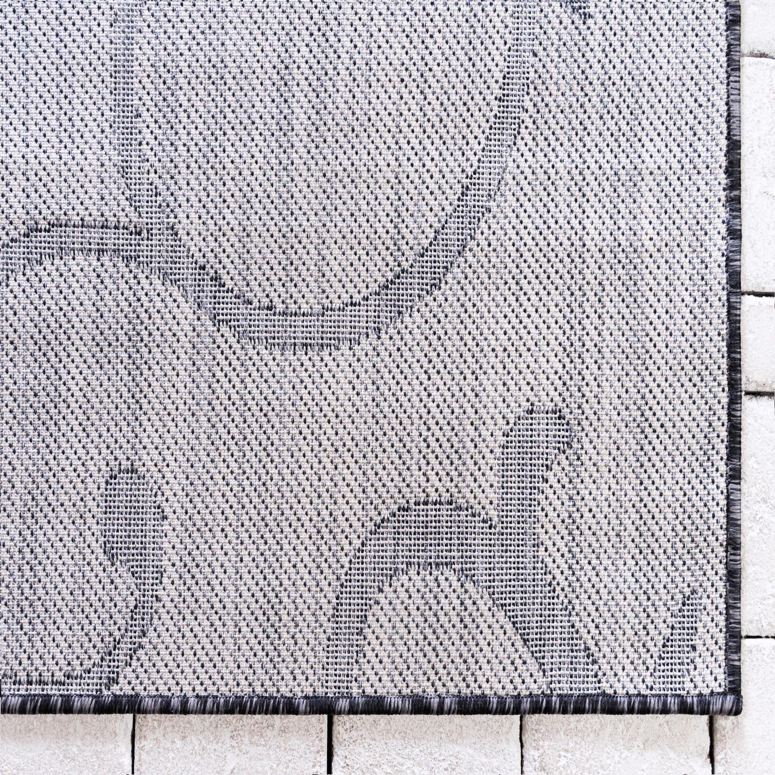 This piece fits well in covered outdoor living areas—think patios, porches, and poolside lounges—as well as transitional indoor spaces like sunrooms, casual dining areas, or entryways. Pair it with natural wood or metal furnishings and neutral cushions for a relaxed, cohesive look, or let it anchor a seating group layered over tile or wood flooring while brighter accent pillows or planters add color. The charcoal and gray palette provides a grounded, versatile backdrop for both cool-toned schemes and pops of vibrant color.