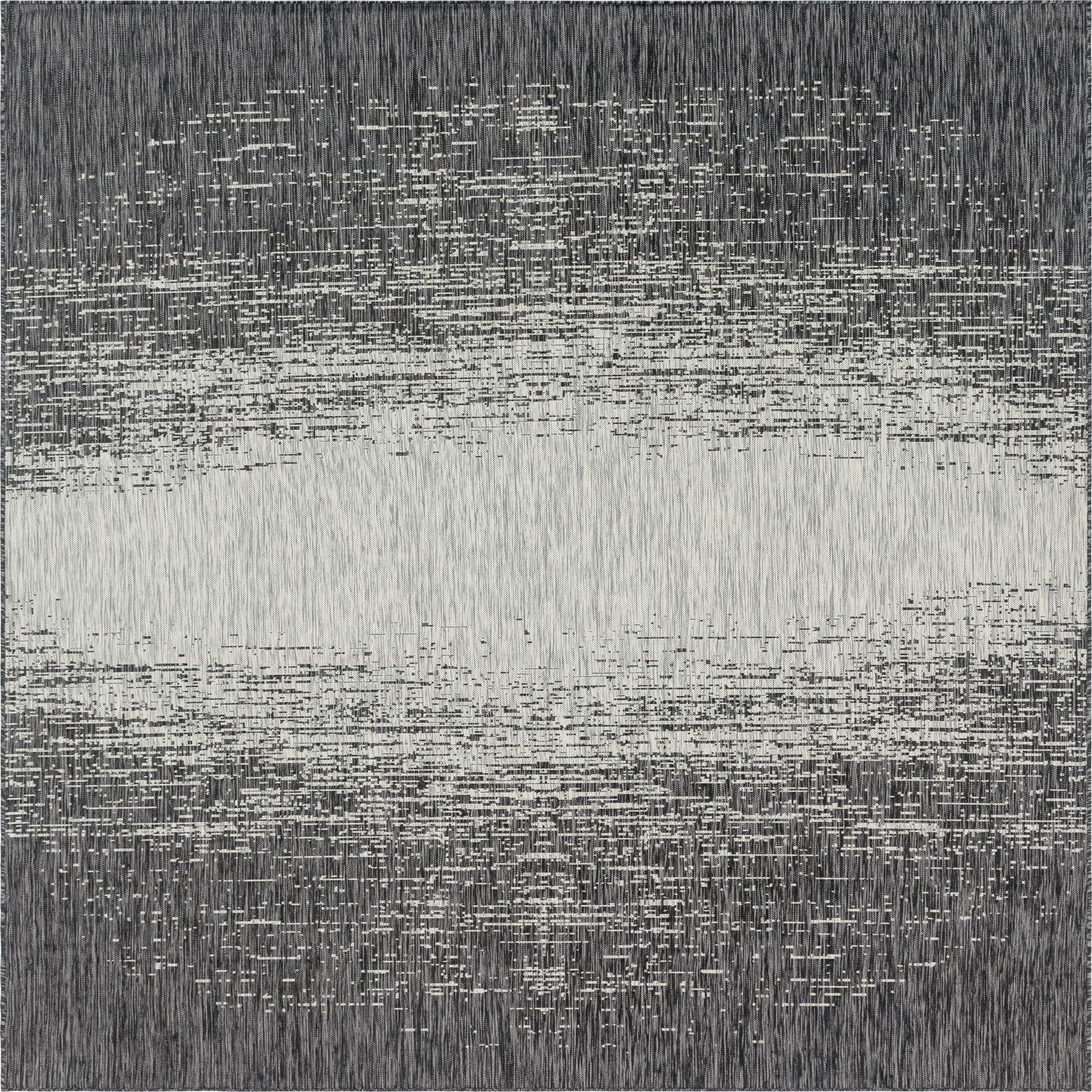 This Outdoor Modern collection rug features a contemporary abstract pattern, blending charcoal gray and lighter gray tones in a visually engaging composition. The machine-woven construction of 100% polypropylene ensures durability and ease of maintenance, making it an ideal choice for spaces that see high traffic.