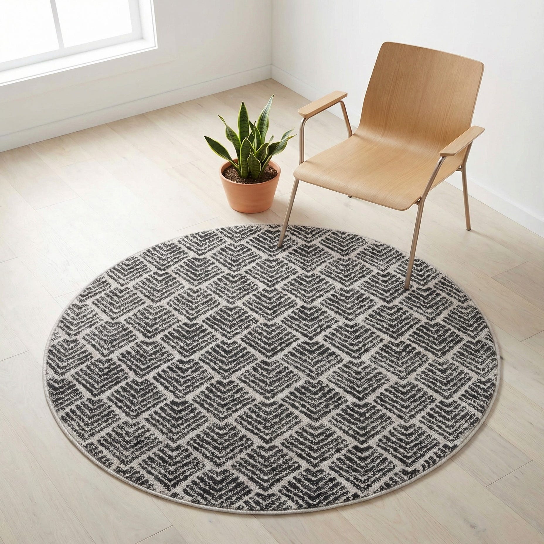 This round piece works well where you want a compact anchor that still makes an impact — think a cozy reading nook, beneath a small bistro table, or in an entryway to define the space. It pairs easily with natural wood furniture, matte black metal accents, and neutral upholstery, and suits modern, Scandinavian, transitional, or relaxed industrial interiors.