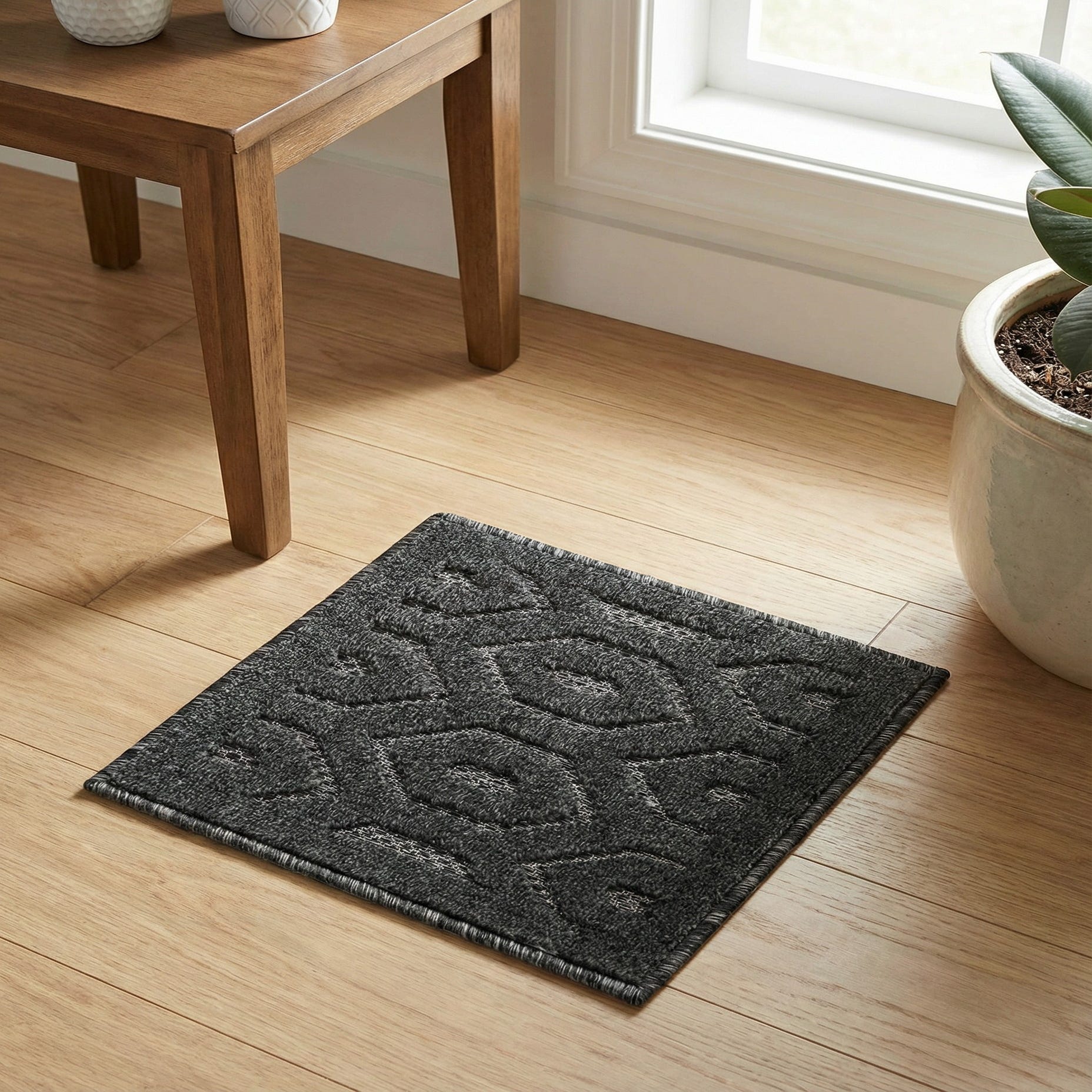 Crafted for outdoor use, this rug is an ideal choice for patios, decks, and entertainment areas, bringing comfort and style to open-air environments. The color palette and pattern are thoughtfully designed to complement a range of outdoor furniture materials, from wicker to metal and wood. Additionally, the subdued charcoal hue pairs seamlessly with both neutral and vibrant color schemes, ensuring a cohesive look that adapts to seasonal changes in decor.