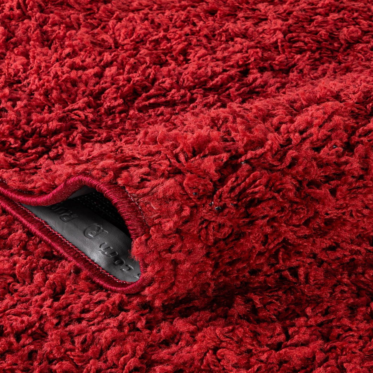 A rich cherry red oval with a uniform, single-color shag pile, this rug offers a plush, velvety surface underfoot. The high, dense fibers create a soft, cushioned texture that feels substantial without appearing busy, making the piece a simple yet striking addition to a room. Machine-made construction provides consistent pile height and a tidy, well-defined oval edge.