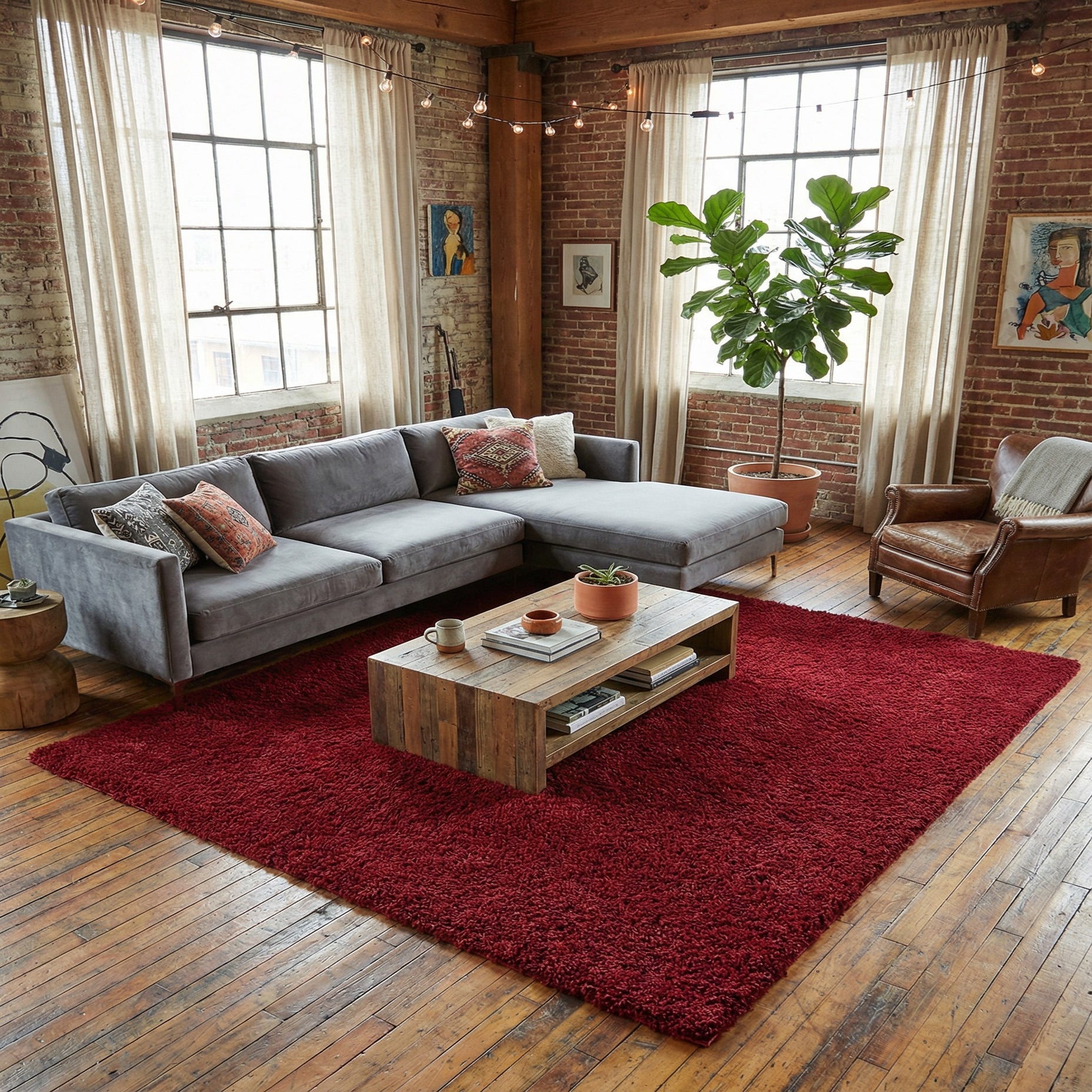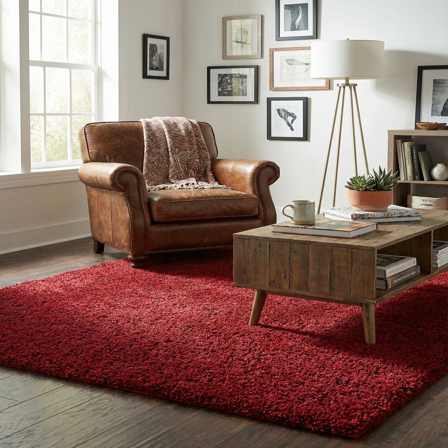 A single-field design in a true cherry red, this shag rug offers a clean, solid pattern that makes color the focal point. Machine-made from 100% polypropylene, the dense shag pile feels plush underfoot while the long, textured fibers catch light to produce subtle tonal variation across the surface. The result is a tactile, cozy layer that adds both visual warmth and soft cushioning to a room.