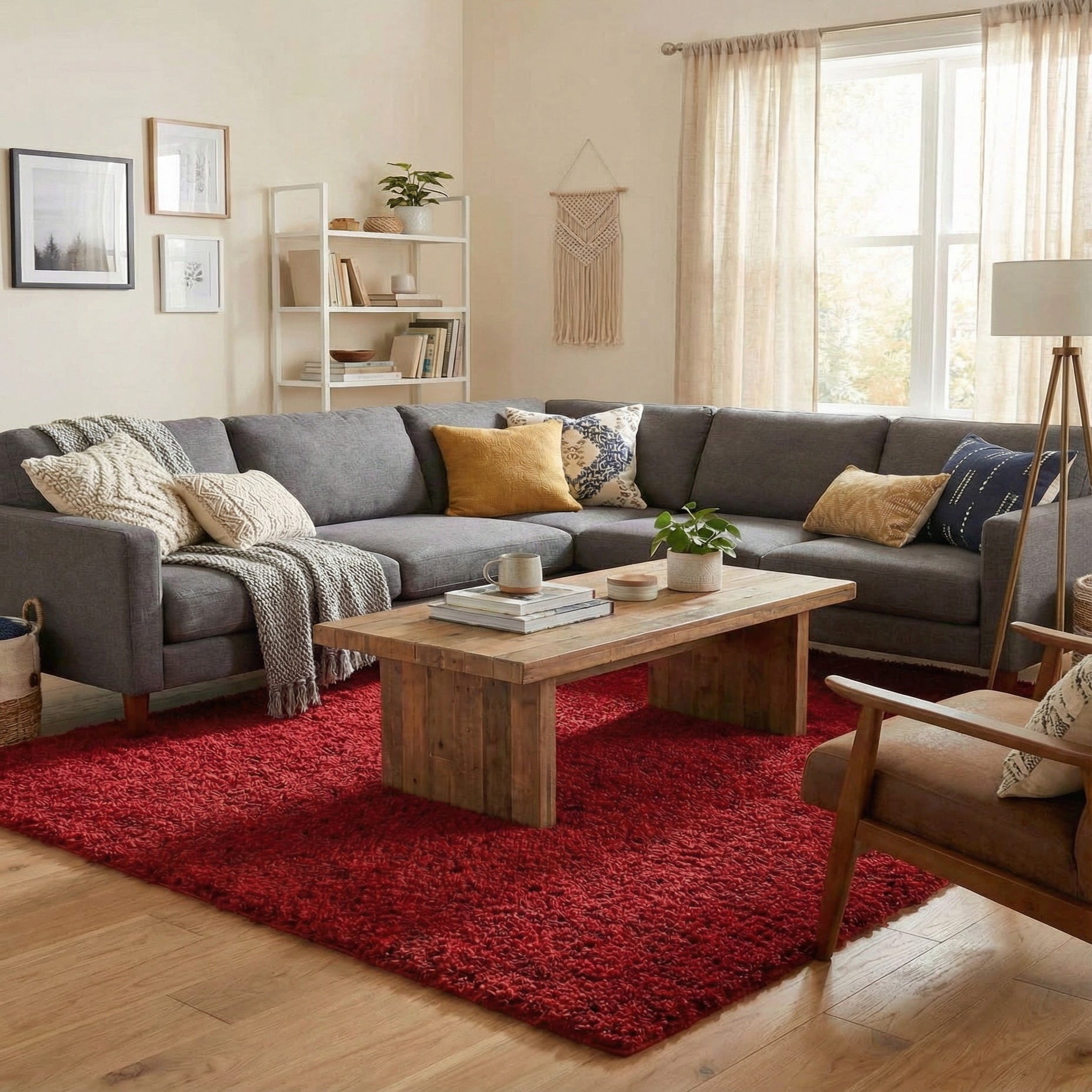 This rug anchors seating areas, softens a bedroom, or adds warmth to a media or family room. Pair it with neutral sofas and natural wood tones for a balanced palette, set it beneath a low coffee table in a mid-century modern scheme, or contrast it with leather and metal pieces for a contemporary industrial look. Its single-color design also works well layered over larger neutrals to introduce a focused pop of color.