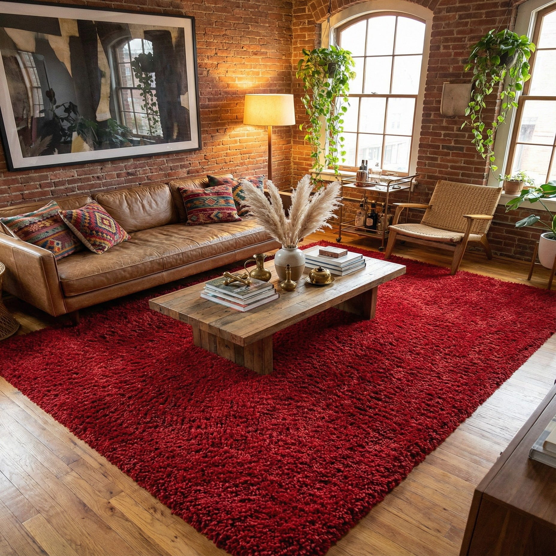 Use this rug to anchor a living area with neutral seating and warm wood tones, or add a strong pop of color to a contemporary bedroom beneath the foot of the bed. It pairs well with mid-century modern furniture, industrial loft elements, or layered over a natural fiber rug for extra texture in eclectic interiors. The solid hue also works in home theaters or playrooms where a single, saturated color can simplify the palette and unify surrounding decor.