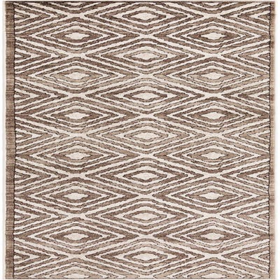 A 13 ft runner rug featuring a modern geometric pattern of brown and tan diamonds, ideal for a hallway.