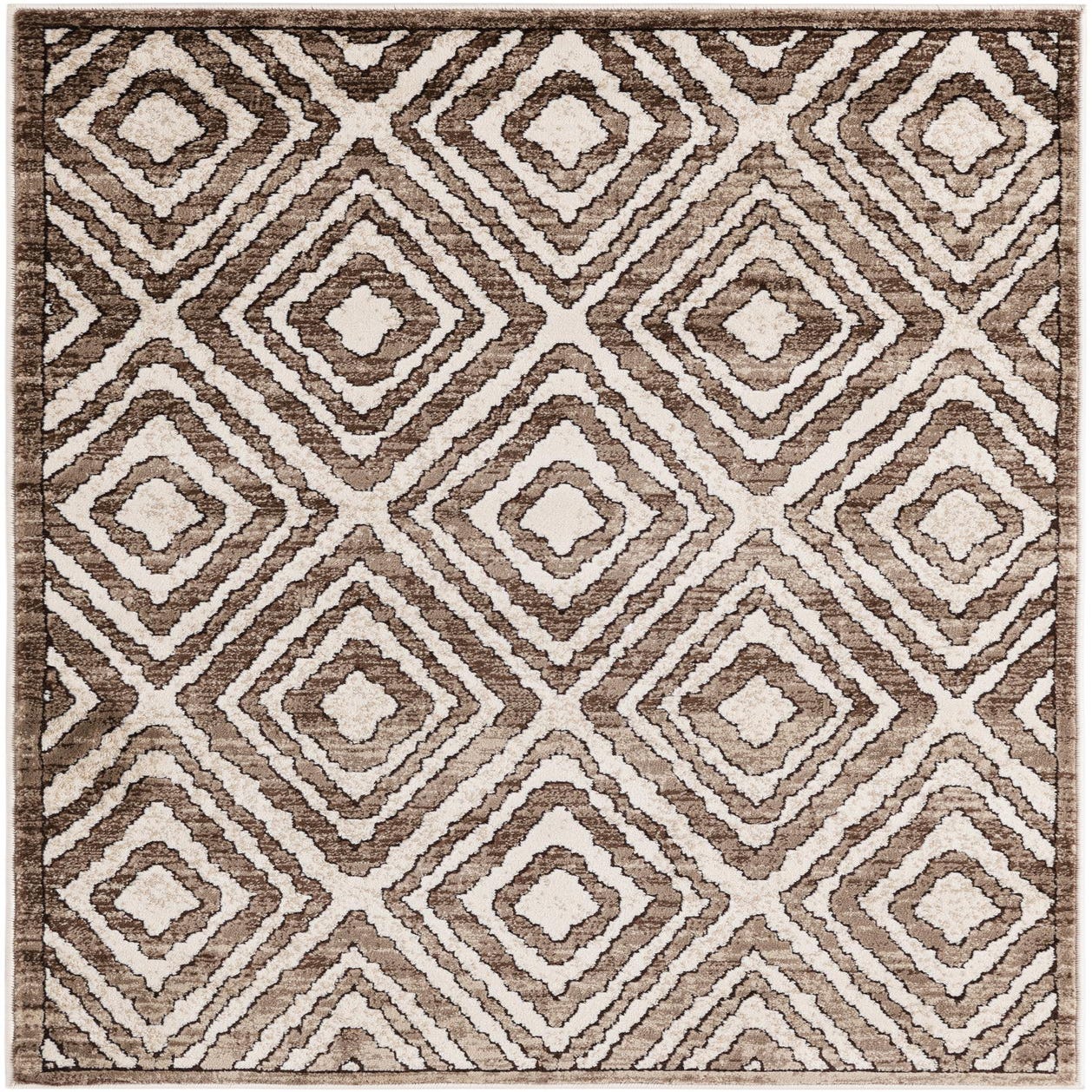 A 3x5 rectangular Hermitage rug featuring a modern geometric diamond pattern in varying shades of brown and tan.