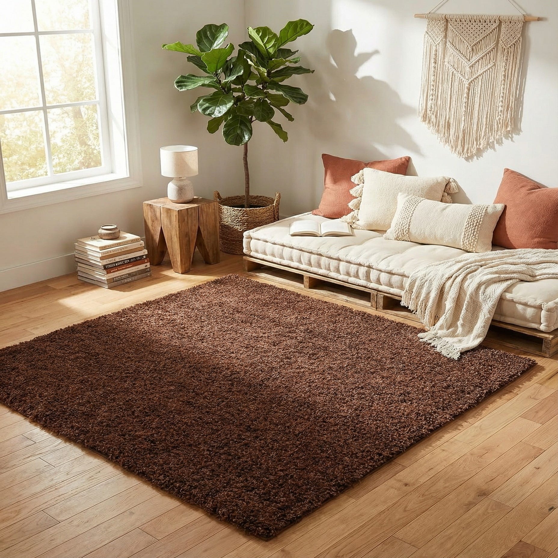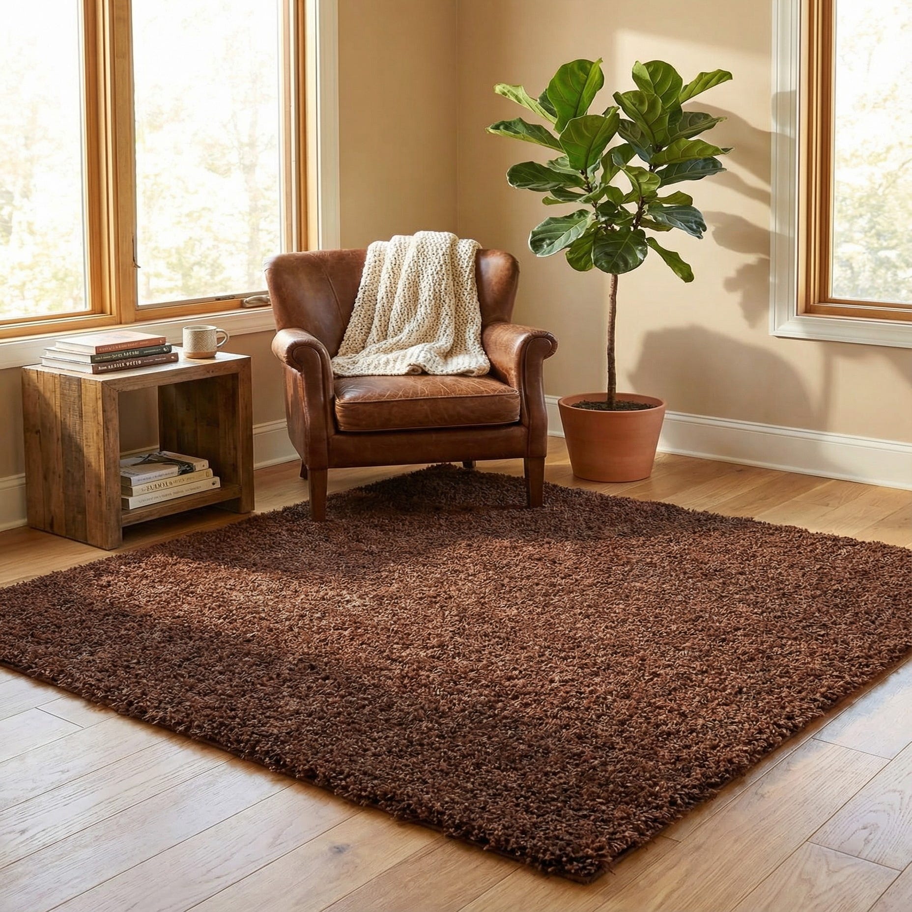 5' x 5' Solid Shag Square Rug