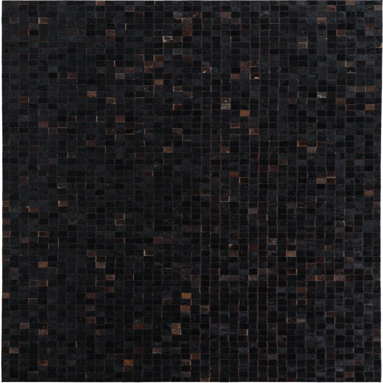 The Cowhide Leather 5x8 rug presents a rich mosaic of chocolate brown, deep brown, and black hues, creating a captivating checkerboard effect. Each handcrafted piece is unique, with patterns that evoke a sense of natural charm and understated elegance. The cowhide and leather materials contribute to a textured surface that's both visually appealing and pleasing underfoot.