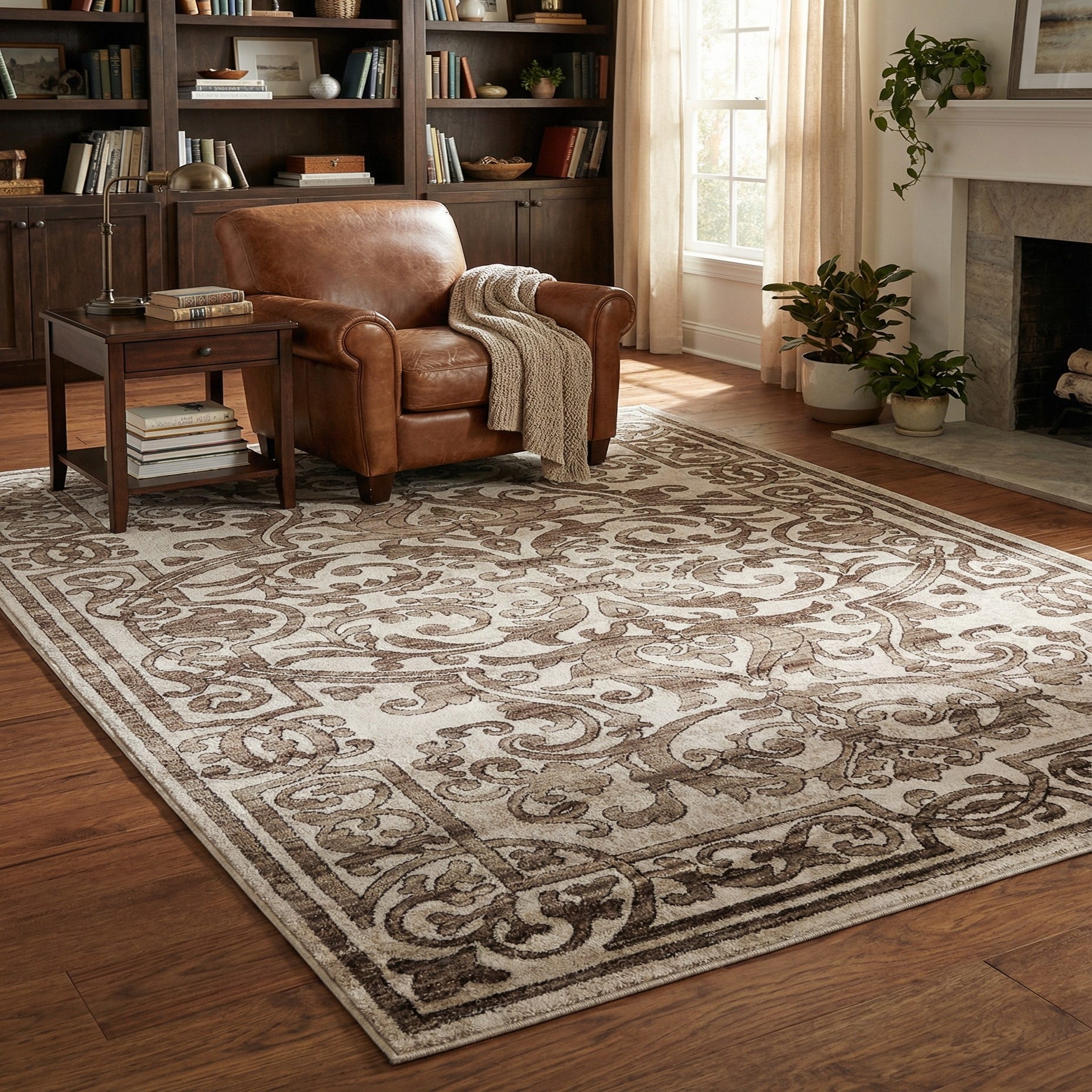 The Hermitage collection presents a sophisticated 5x8 area rug, machine woven with a blend of 55% polypropylene and 45% polyester that delivers a durable, shed-free experience with the added benefit of being stain-resistant. The rug showcases an intricate, baroque-inspired pattern, rendered in a rich chocolate brown background, accented with detailing in beige and black to create a captivating contrast. The plush texture offers comfort underfoot, while the resilient materials promise longevity and ease of maintenance.