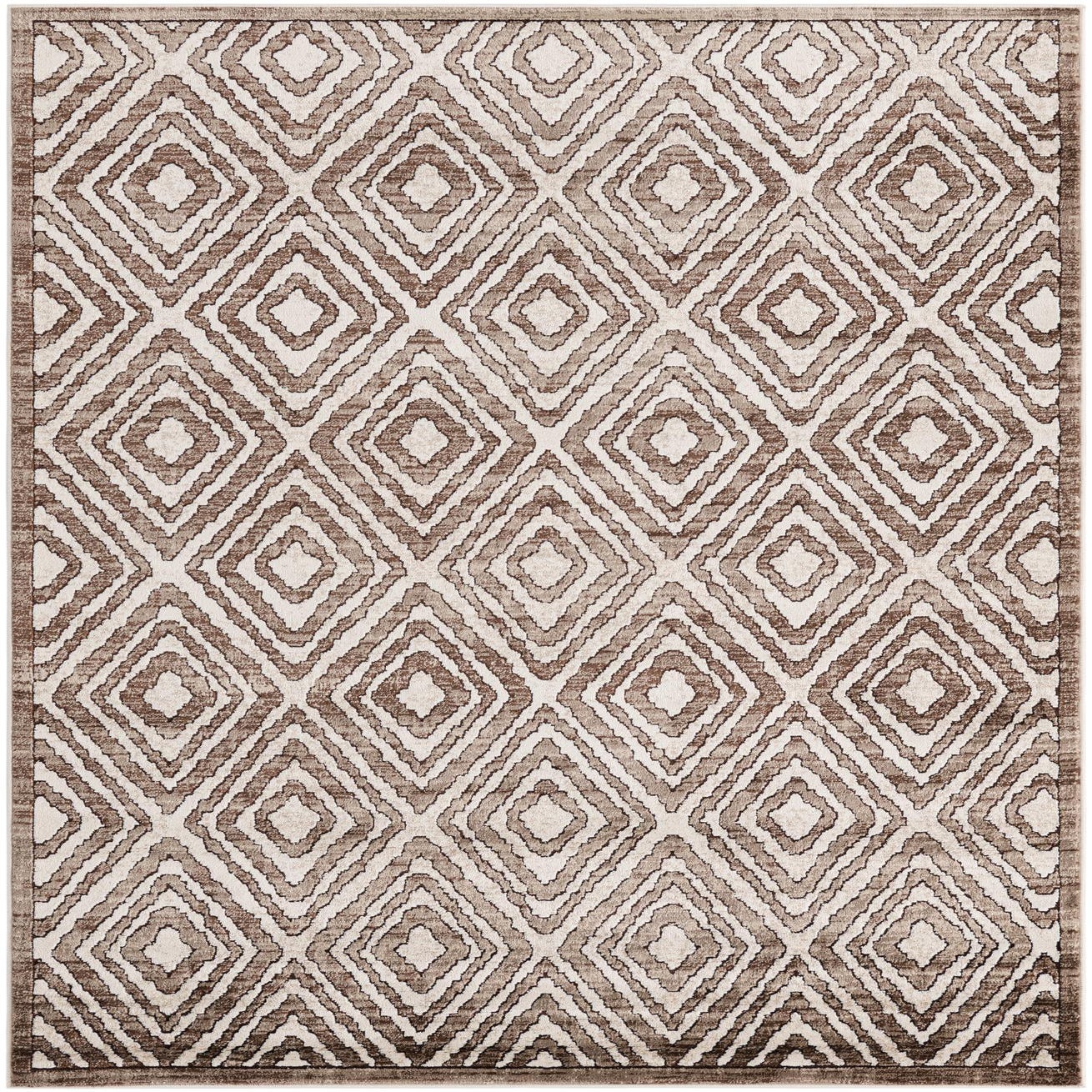 A 5x8 rectangular Hermitage rug featuring a modern geometric diamond pattern in varying shades of brown and tan.