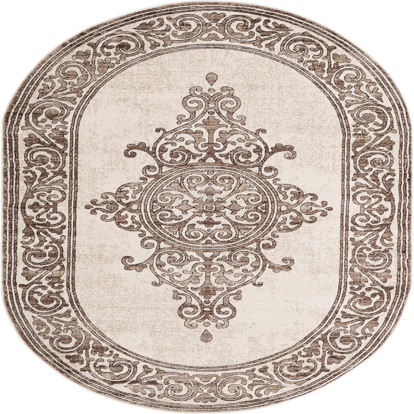 Machine made from 55% polypropylene and 45% polyester, the pile is low and dense, offering a smooth, slightly plush hand that feels comfortable underfoot. The durable construction and muted palette make this rug a good anchor for a range of interiors — pair it with warm wood furniture and leather accents for a classic living room, place it in an entry or foyer to introduce pattern and warmth, or use it beneath a round or oval dining table to echo the rug’s shape. It also complements neutral, transitional, or traditional decor schemes where layered texture and subtle contrast are desired.