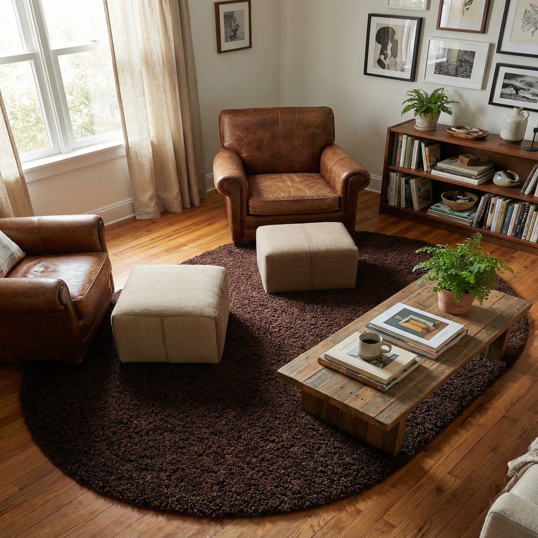 This rug is well suited to casual and contemporary settings—layer it under a small coffee table in a cozy living room, place it at the foot of a bed to add warmth to the bedside, or use it to define a reading nook or entry area. Its deep brown hue pairs naturally with warm woods, leather seating, neutral linens, and earthy accent colors, making it an easy choice for relaxed, lived-in interiors.