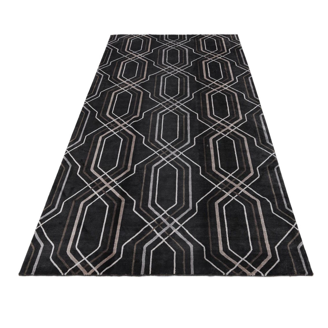 Hand-knotted from 100% wool, the pile feels dense and soft underfoot with a low, slightly plush hand that highlights subtle pile direction and a restrained sheen. Well-suited for a living room under a sofa and coffee table, a home office anchored by a desk, or a dining area with streamlined furniture, it pairs naturally with warm wood floors, leather seating, neutral linen upholstery, and metal accents in brushed brass or matte black for contemporary, transitional, or mid-century modern interiors.