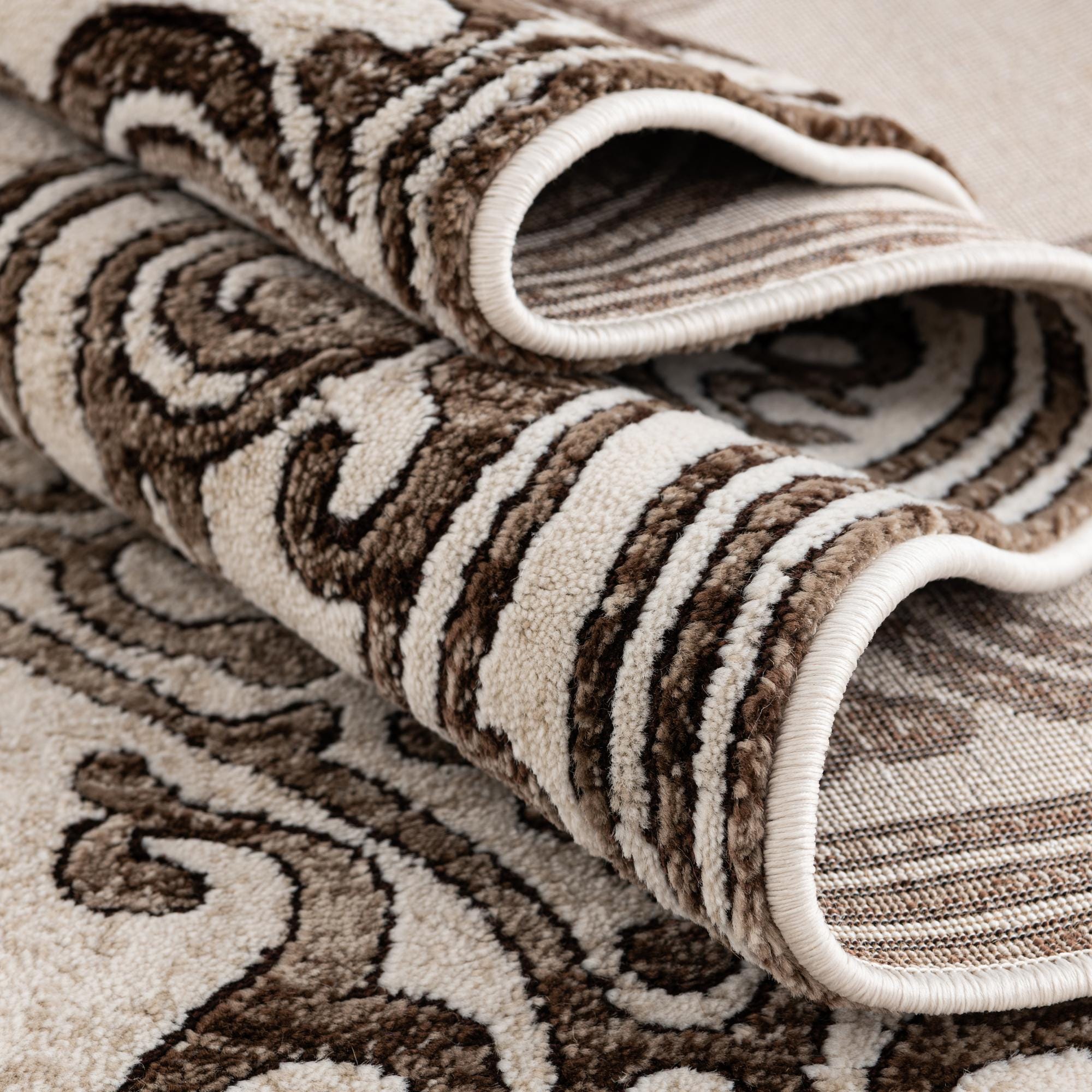 Machine made from 55% polypropylene and 45% polyester, the construction delivers a dense, even surface that stands up to daily use while remaining comfortable. Its oval silhouette and warm neutral palette work well beneath an oval dining table, in a living room with wood furniture and leather accents, or in a foyer that benefits from a refined focal point. Pair it with cream or tan upholstery and dark metal or black accents to pick up the rug’s detailing and create a cohesive, layered look.