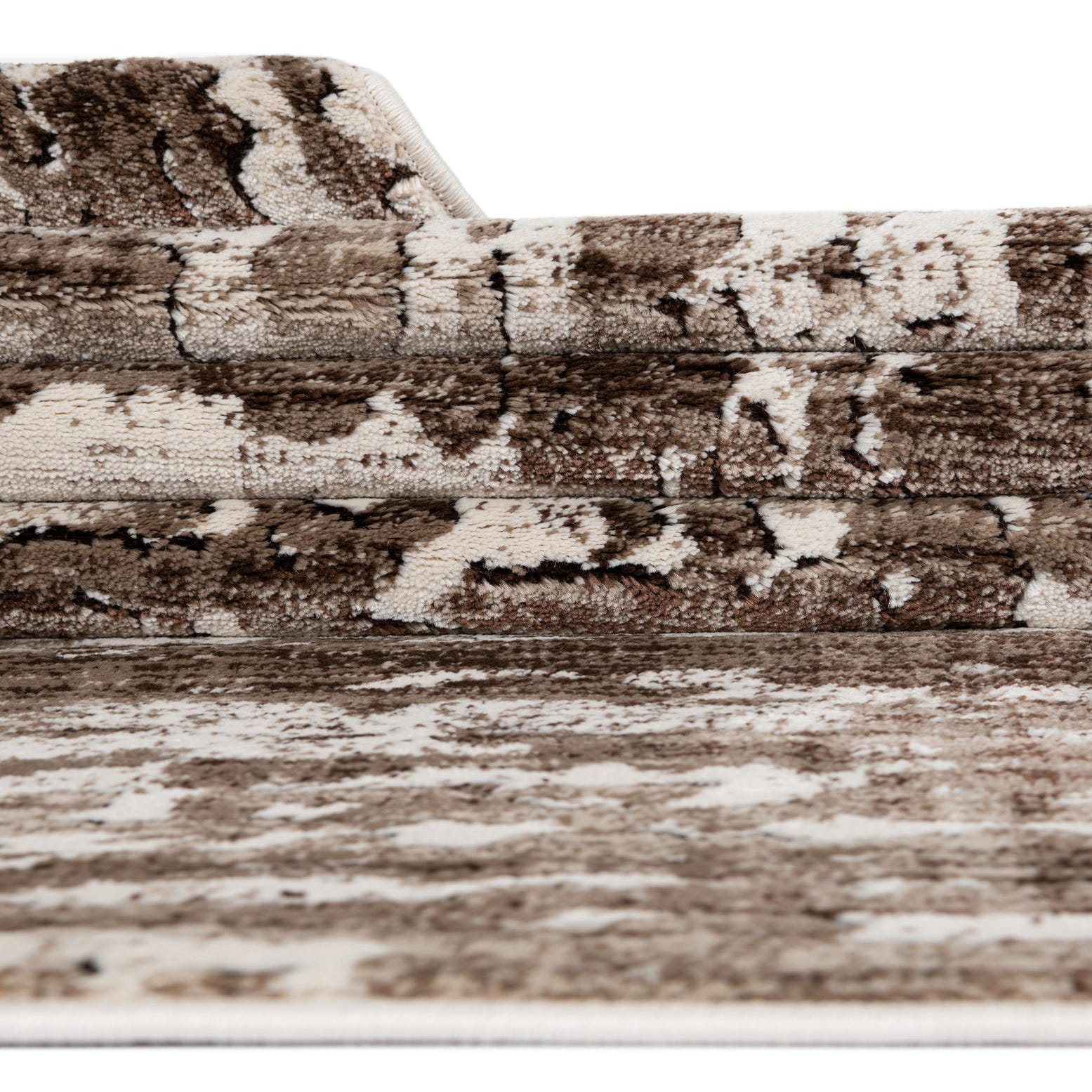 Place this rug beneath a round dining table to define the seating area, or use it in a living room to warm hardwood floors and complement neutral upholstery. It pairs naturally with warm wood finishes, black metal accents, and beige linens—making it a good fit for transitional, modern-rustic, or contemporary interiors. The pattern and palette also work well in a cozy reading nook or home office where understated texture and layered tones are desired.