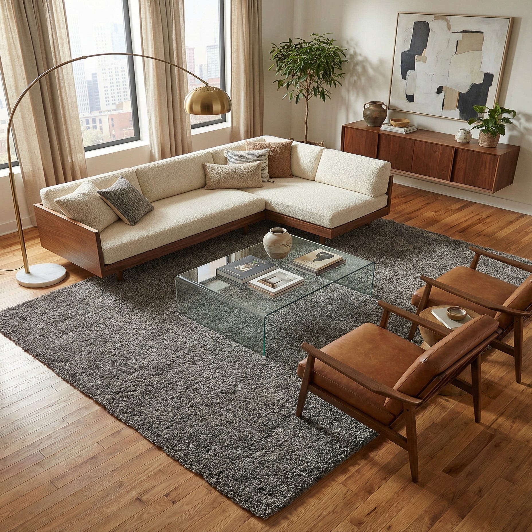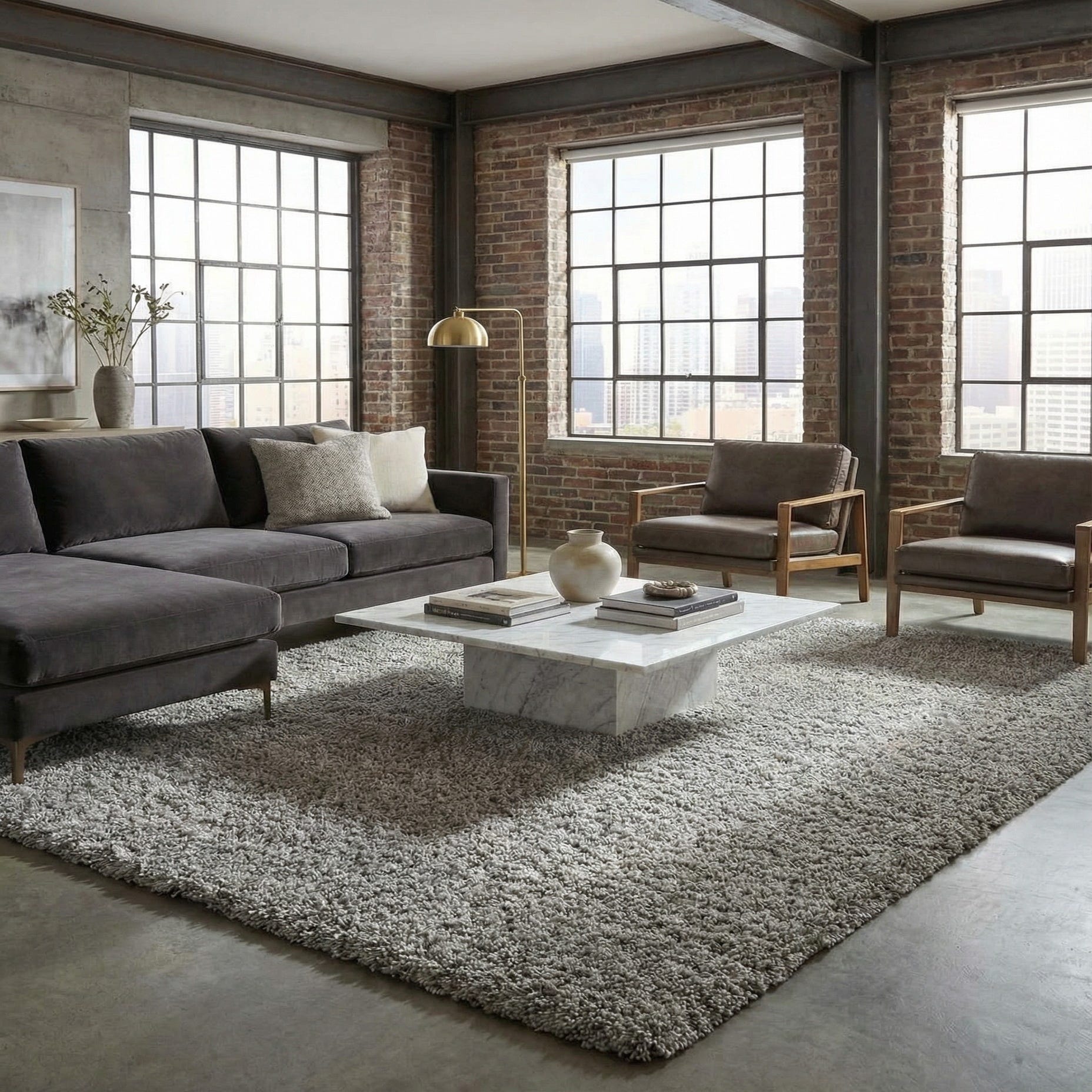 A 10x13 rectangular gray shag rug with a plush, textured pile, perfect for a modern living room or bedroom.