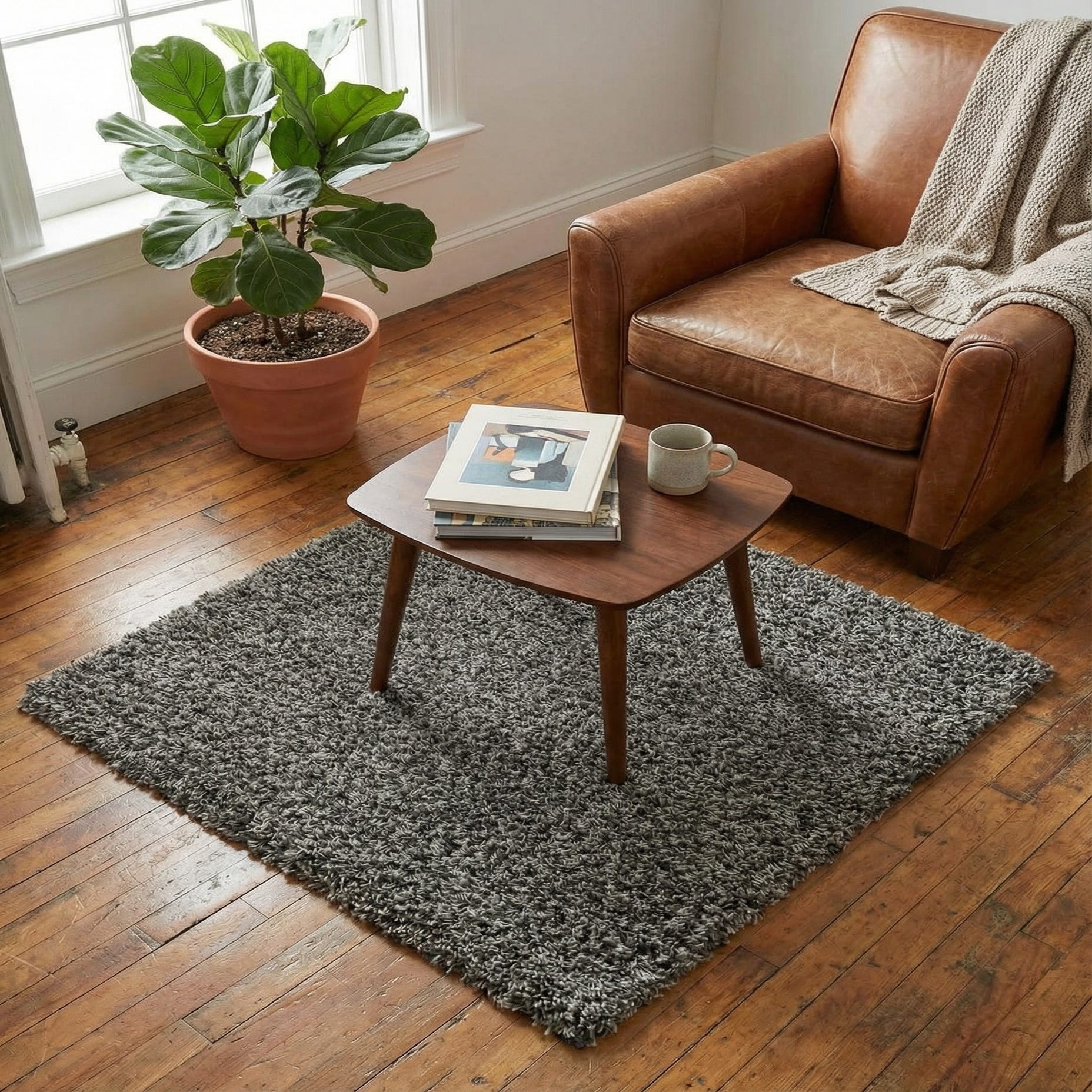 This square shag is ideal as a bedside accent, tucked beneath a reading chair, layered over a larger area rug in a living room, or placed in a cozy home office or nursery to add warmth underfoot. Pair it with warm wood furniture and crisp whites for a Scandinavian-influenced look, use it to soften a modern minimal space with charcoal or navy accents, or add it to a transitional room to introduce texture without competing with existing patterns.