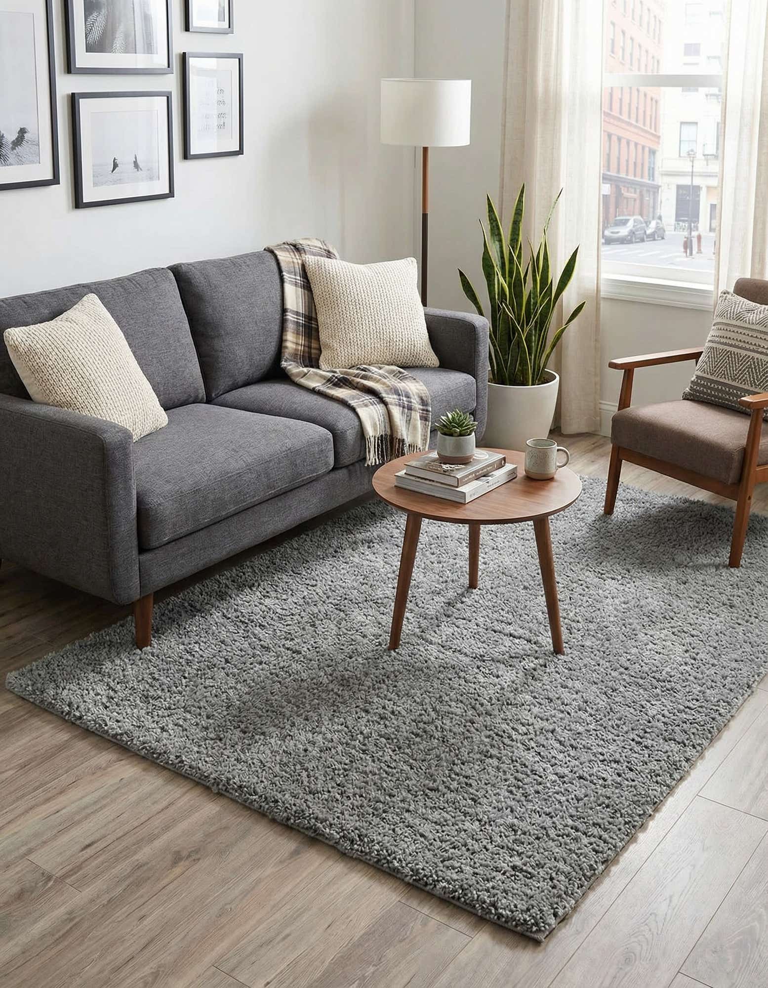 This rug pairs well with modern, Scandinavian, or transitional interiors—place it beneath a compact seating arrangement, at the foot of a bed, or beside a desk to introduce softness and quiet visual grounding. Cloud Gray works smoothly with cool color schemes, natural wood finishes, and layered textiles, making it a versatile choice for living rooms, bedrooms, nurseries, or cozy reading nooks.