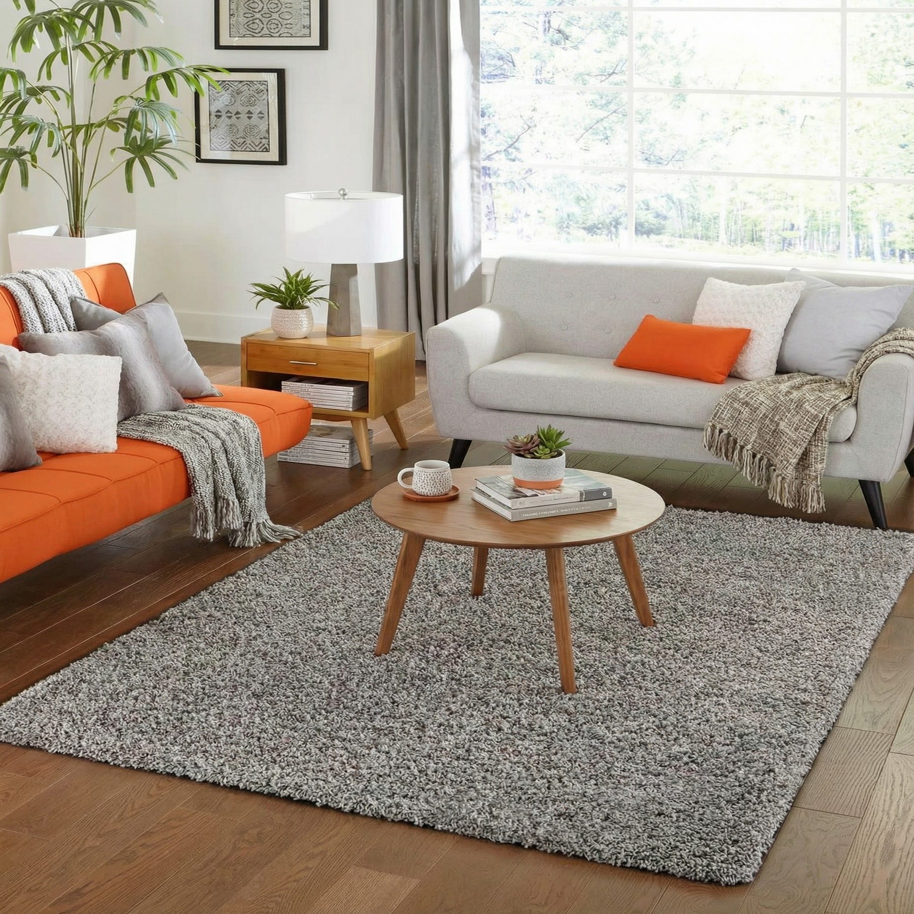 A 4x6 rectangular gray shag rug with a soft, textured pile, perfect for a modern living room or bedroom.