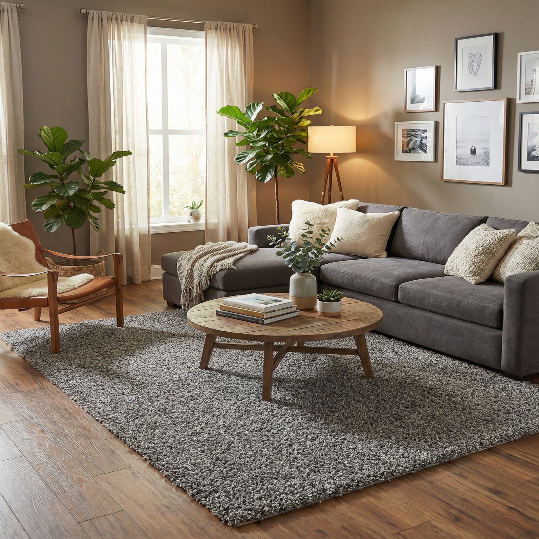 This rug works well layered in a contemporary living room beneath a low-profile sofa and coffee table, or placed beside the bed to add warmth and softness to a bedroom. It also complements minimalist and Scandinavian interiors, pairing nicely with light woods and matte metal accents, and serves as a comfortable anchor for casual family or media rooms where a neutral base is preferred.