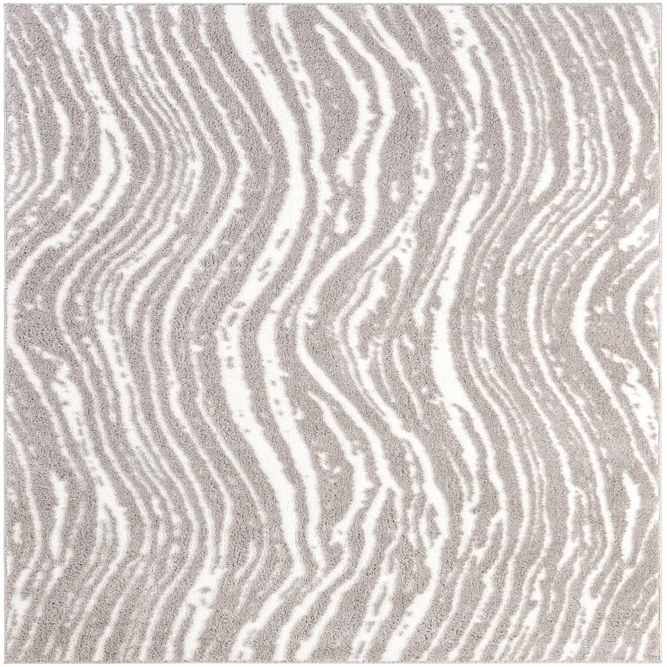 Machine made of polypropylene and polyester, the rug has a plush hand and a low-to-medium pile that feels cushioned underfoot. The contrast between the Cloud Gray background and the ivory lines creates a slight tactile variation you can feel as well as see, adding depth to hardwood, tile or carpeted floors. Place it beneath a sofa to anchor a seating area, layer it in a bedroom for added softness, or use it in a home office to introduce pattern while keeping the look restrained and modern.