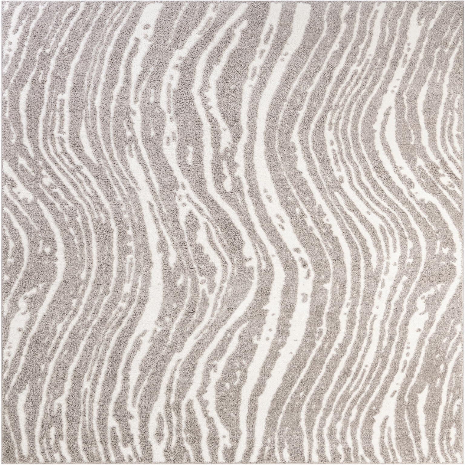 An organic, wavy stripe pattern moves across a cloud gray ground in soft ivory, creating a flowing, modern look that’s both relaxed and refined. The machine-made construction in polypropylene and polyester gives the surface a smooth, low-to-medium pile with a gentle tactile contrast between the pattern and background—warm to the touch and comfortable underfoot. The neutral cloud gray background lets the ivory motif stand out without overwhelming a space.