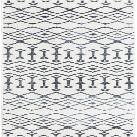 Primary color is Coastal White. Colors in this rug include: Coastal White, Navy Blue.
