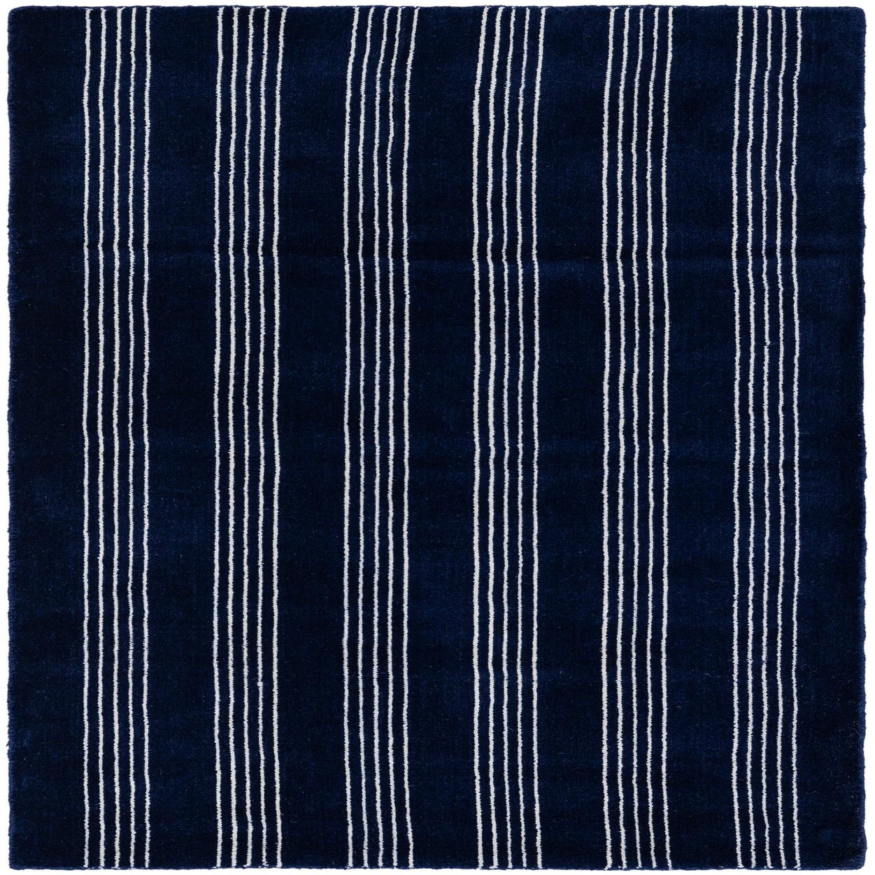 A 3x5 rectangular Jill Zarin Striped Wool rug in cobalt blue with thin white vertical stripes.