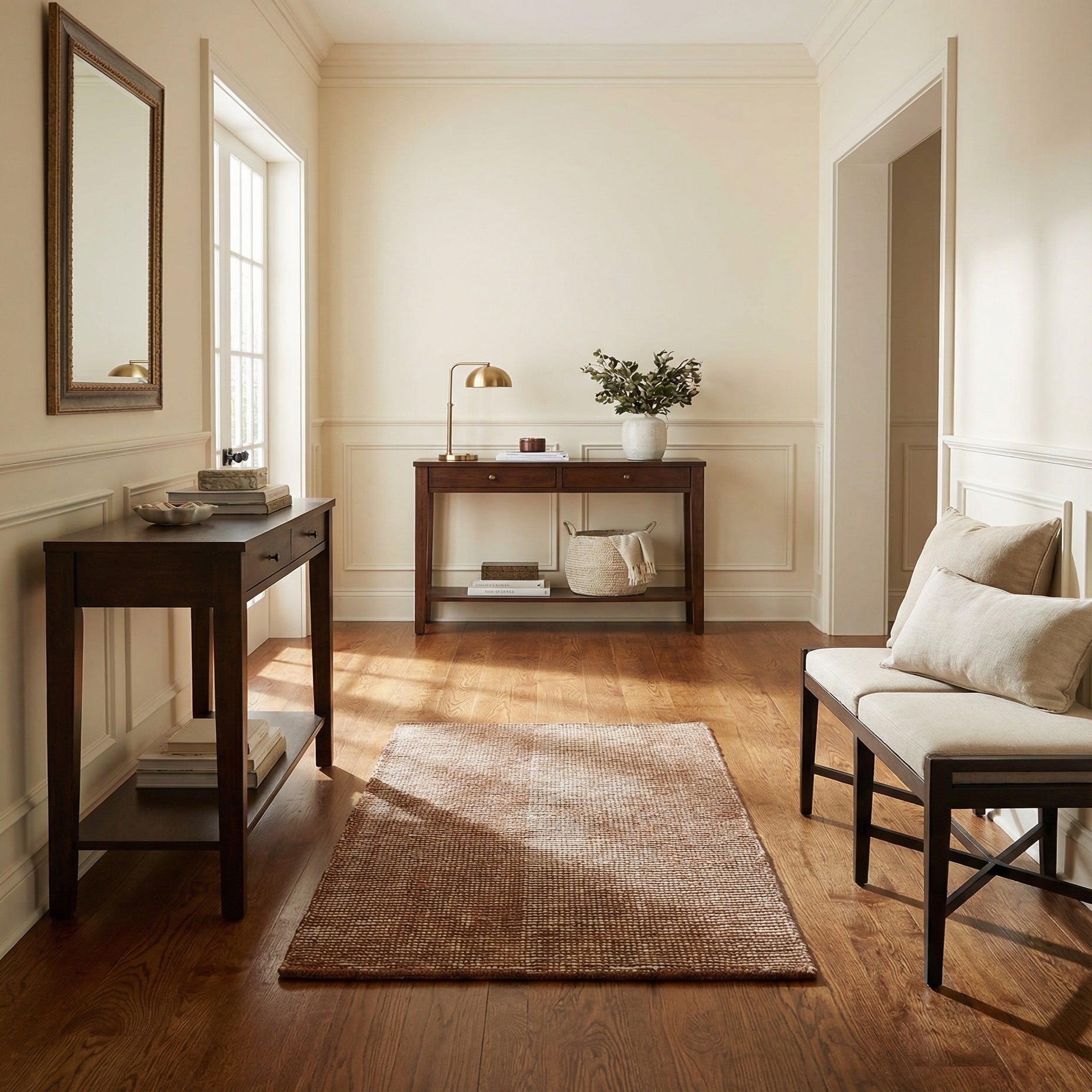 This runner is well-suited to entryways, narrow hallways, and galley kitchens where a warm, neutral anchor is needed. Pair it with warm wood floors and woven or linen textiles for a relaxed, layered look, or combine it with leather seating and matte metal accents for a more modern, lived-in vibe. Its understated pattern and cocoa bean brown background make it an easy complement to transitional, Scandinavian, or farmhouse-inspired interiors.