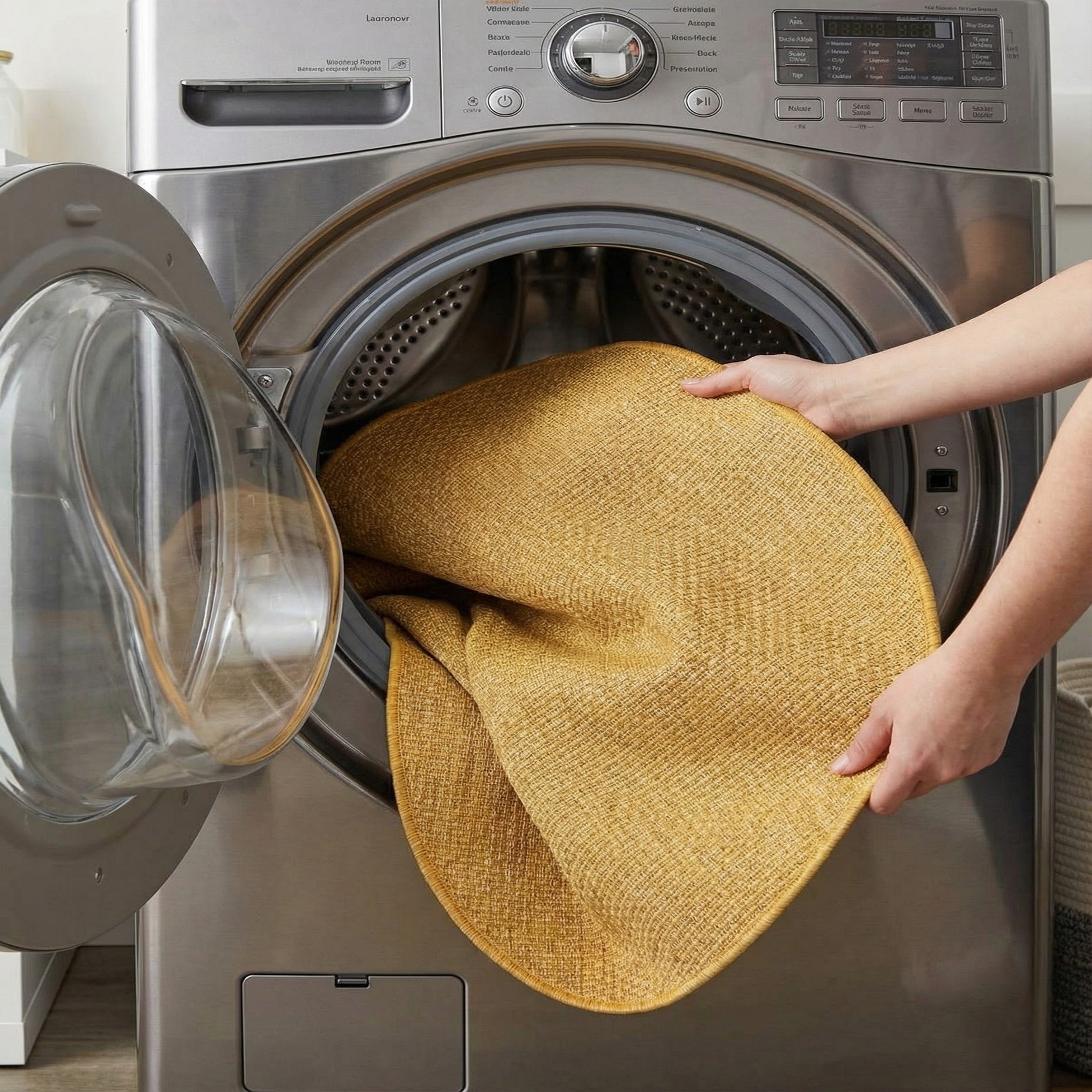 This piece works well under a bistro table on a covered patio, as a sunny accent in a sunroom, or to warm a breakfast nook or mudroom. It pairs nicely with natural wood and rattan furniture, crisp white textiles, or deep denim blues, fitting casual coastal, modern farmhouse, and mid-century-inspired interiors.