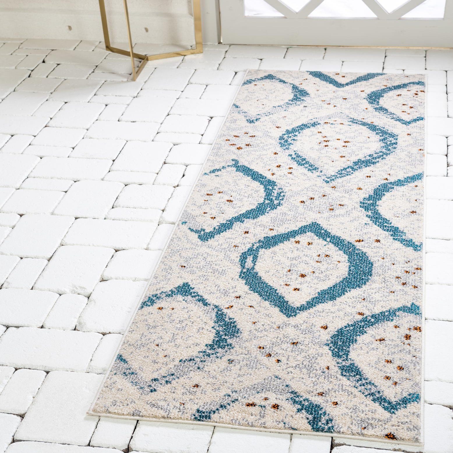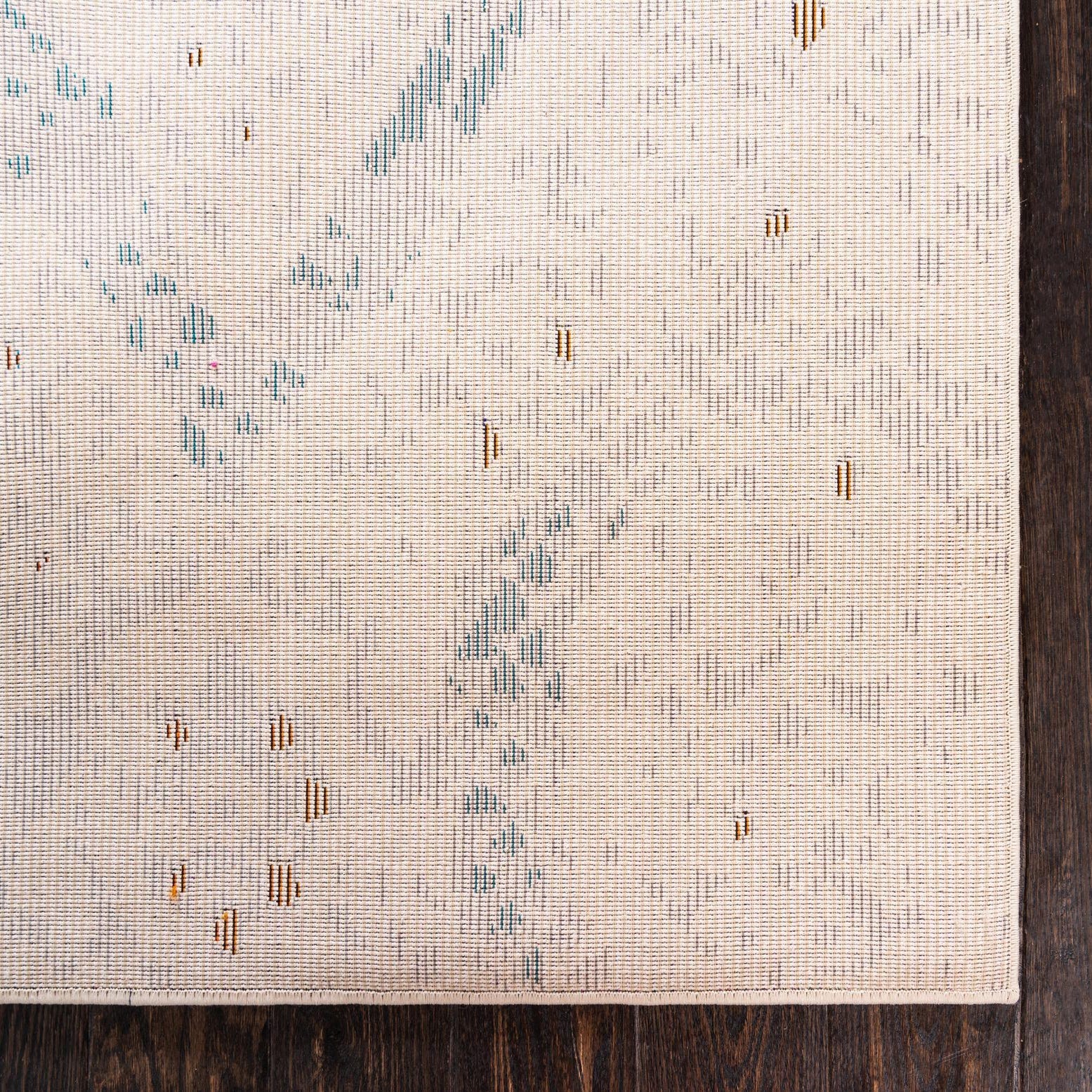 Primary color is Cream. Colors in this rug include: Cream, Blue, Ivory, Orange, Brown.