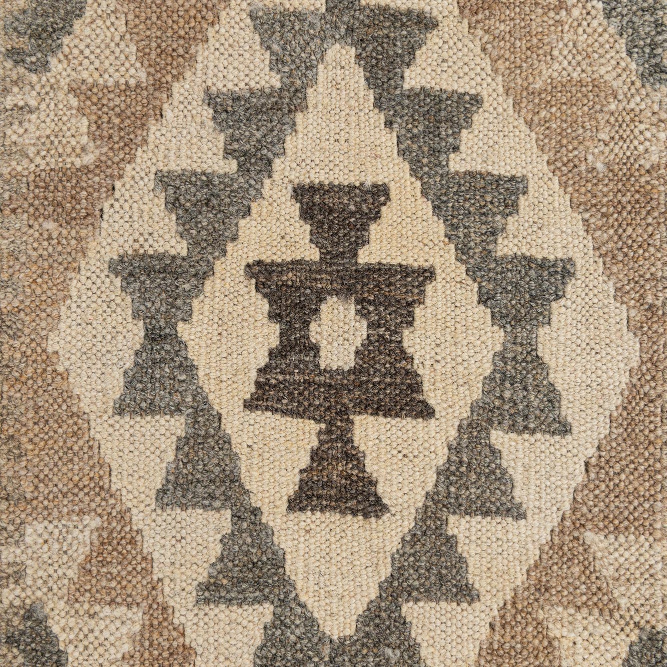 Primary color is Cream. Colors in this rug include: Cream, Beige, Brown, Gray.